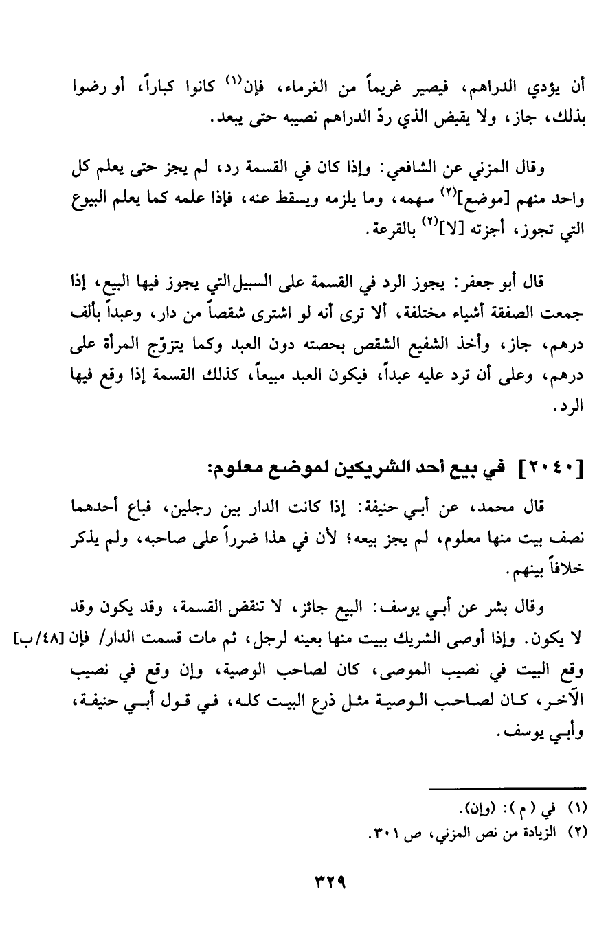 2040 - فِي بيع أحد الشَّرِيكَيْنِ لموْضِع مَعْلُوم