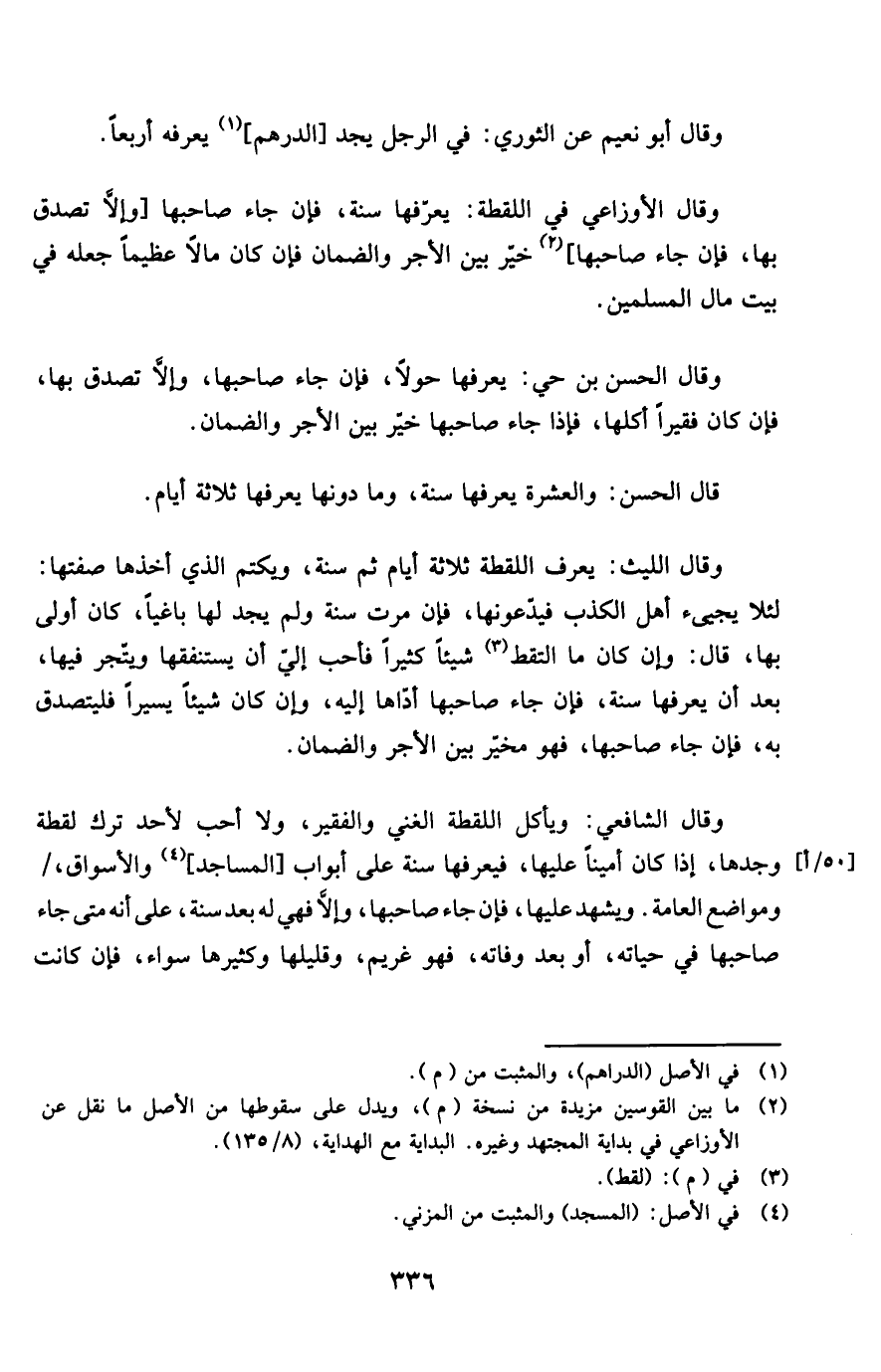 وَقَالَ الْأَوْزَاعِيّ فِي اللّقطَة يعرفهَا سنة فَإِن جَاءَ صَاحبهَا وَإِلَّا تصدق بهَا فَإِن جَاءَ صَاحبهَا خير بَين الْأجر وَالضَّمان فَإِن كَانَ مَالا عَظِيما جعله فِي بَيت مَال الْمُسلمين