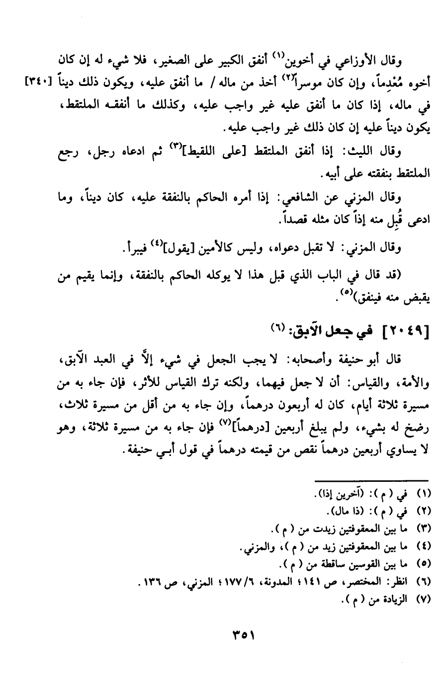 وَقَالَ الْمُزنِيّ عَن الشَّافِعِي إِذا أمره الْحَاكِم بِالنَّفَقَةِ عَلَيْهِ كَانَ دينا وَمَا ادّعى قبل مِنْهُ إِذا كَانَ مثله قصدا