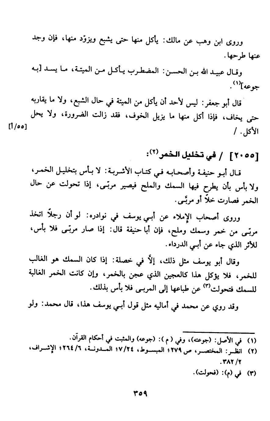 قَالَ أَبُو حنيفَة وَأَصْحَابه فِي كتاب الْأَشْرِبَة لَا بَأْس بتخليل الْخمر وَلَا بَأْس بِأَن يطْرَح فِيهَا السّمك وَالْملح فَيصير مربى إِذا تحولت عَن حَال الْخمر فَصَارَت خلا أَو مربى