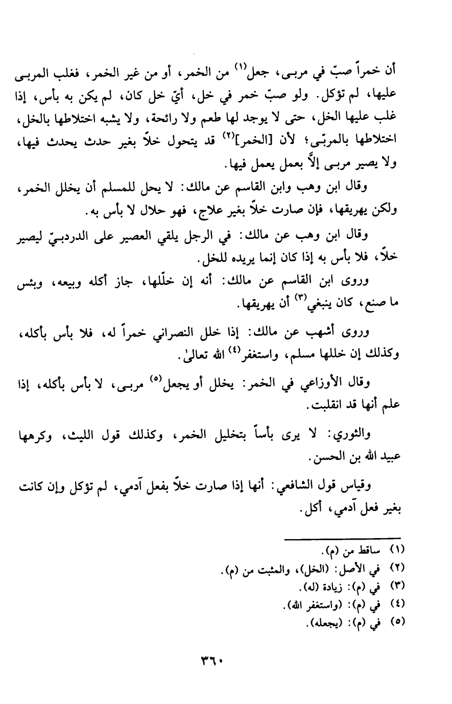 وَالثَّوْري لَا يرى بَأْسا بتخليل الْخمر وَكَذَلِكَ قَول اللَّيْث وكرهها عبيد الله بن الْحسن