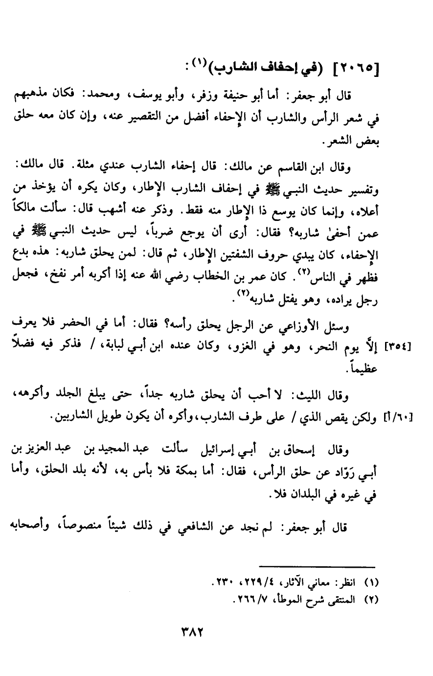 قَالَ أَبُو جَعْفَر أما أَبُو حنيفَة وَزفر وَأَبُو يُوسُف وَمُحَمّد فَكَانَ مَذْهَبهم فِي شعر الرَّأْس والشارب أَن الإحفاء أفضل من التَّقْصِير عَنهُ وَإِن كَانَ مَعَه حلق بعض الشّعْر