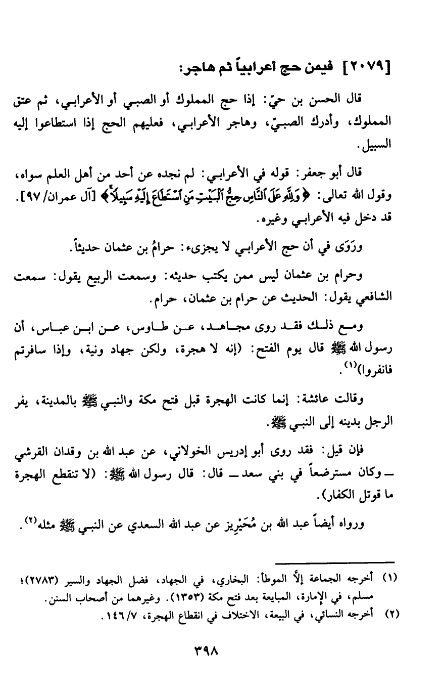 قَالَ أَبُو جَعْفَر قَوْله فِي الْأَعرَابِي لم نجده عَن أحد من أهل الْعلم سواهُ وَقَول الله تَعَالَى {وَللَّه على النَّاس حج الْبَيْت من اسْتَطَاعَ إِلَيْهِ سَبِيلا} قد دخل فِيهِ الْأَعرَابِي وَغَيره