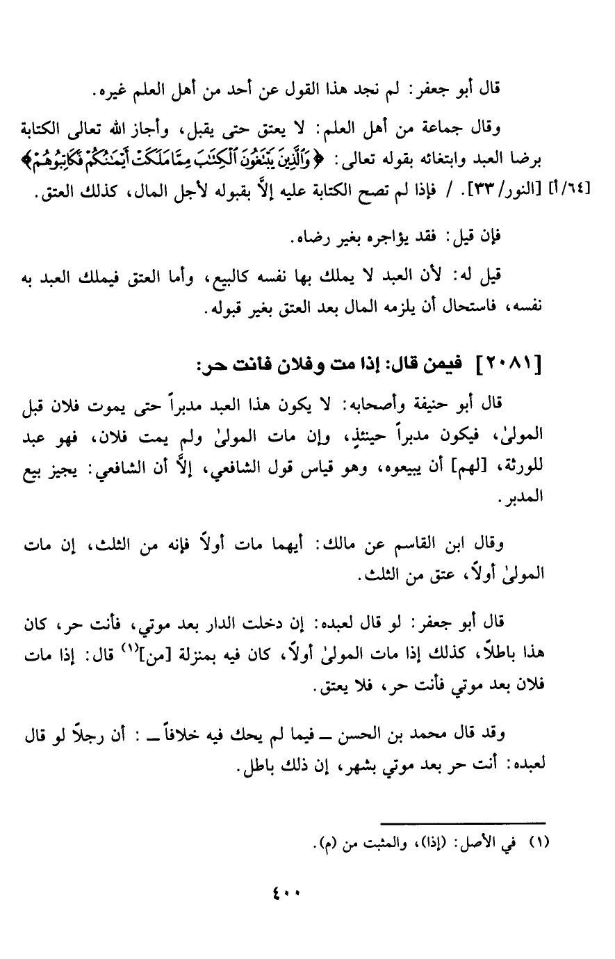 2081 - فِيمَن قَالَ إِذا مت وَفُلَان فَأَنت حر