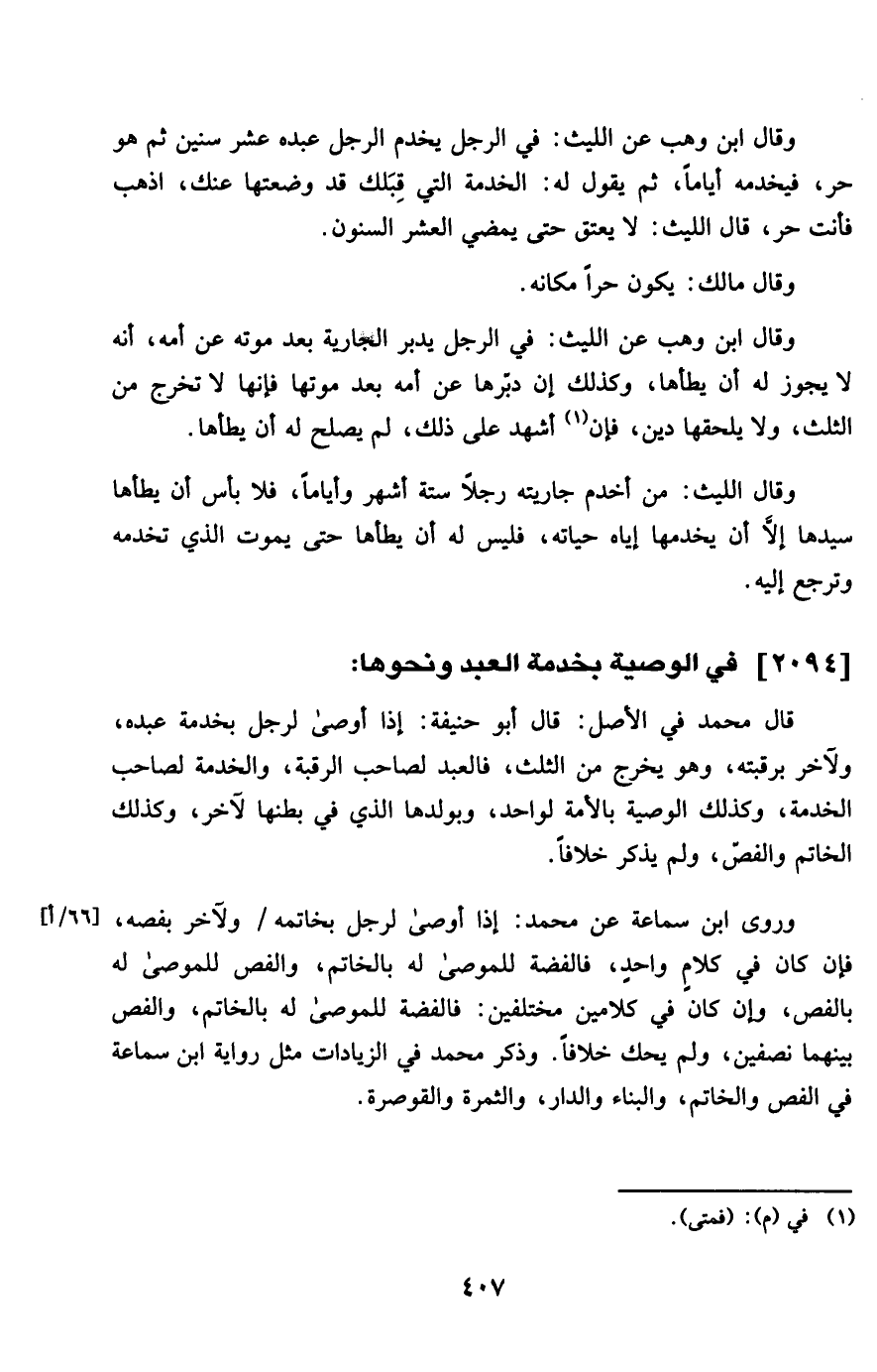 2094 - فِي الْوَصِيَّة بِخِدْمَة العَبْد وَنَحْوهَا