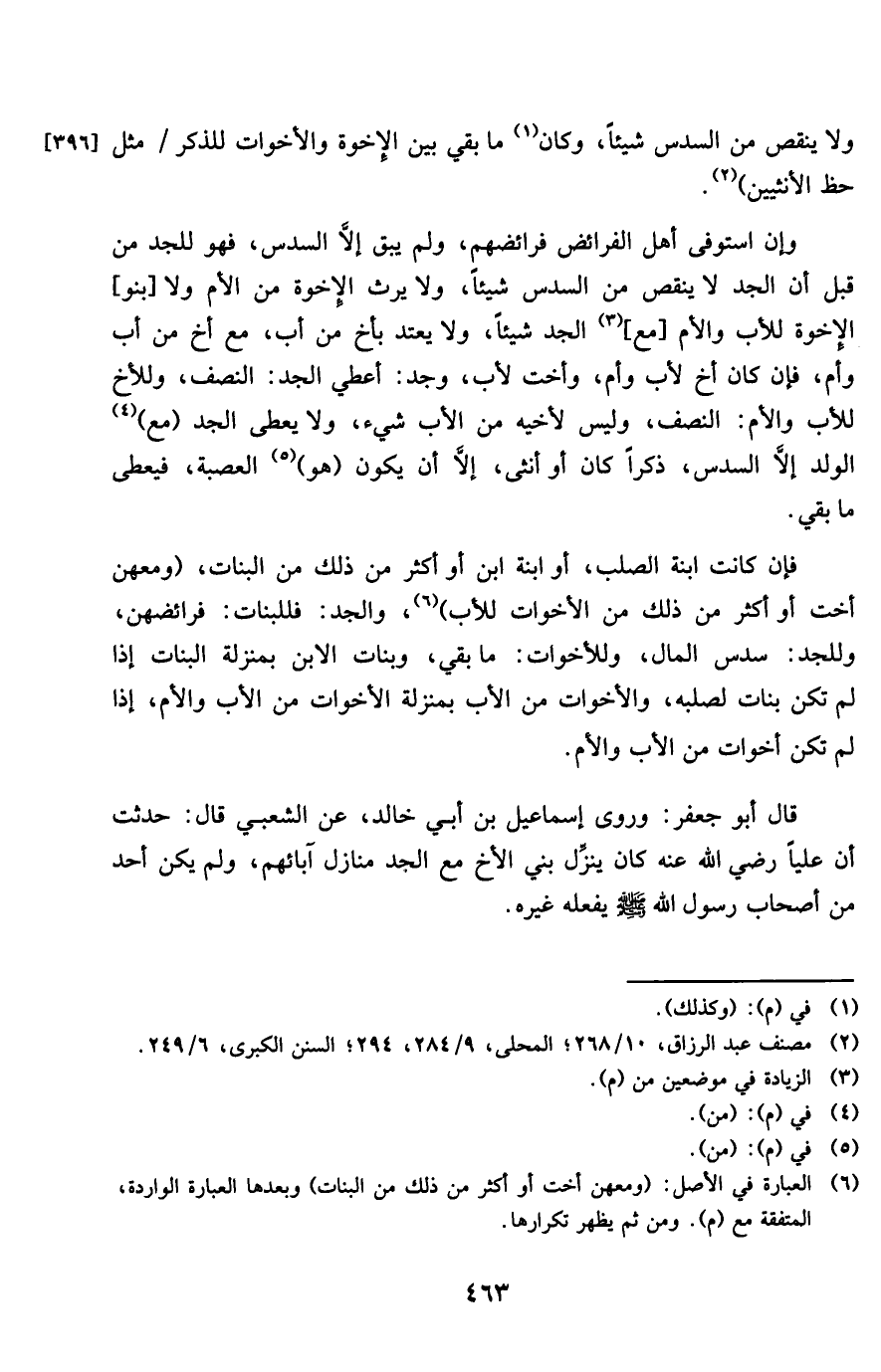 قَالَ أَبُو جَعْفَر وروى إِسْمَاعِيل بن أبي خَالِد عَن الشّعبِيّ قَالَ حدثت أَن عليا رَضِي الله عَنهُ كَانَ ينزل بني الْأَخ مَعَ الْجد منَازِل آبَائِهِم وَلم يكن أحد من أَصْحَاب رَسُول الله صلى الله عَلَيْهِ وَسلم يَفْعَله غَيره