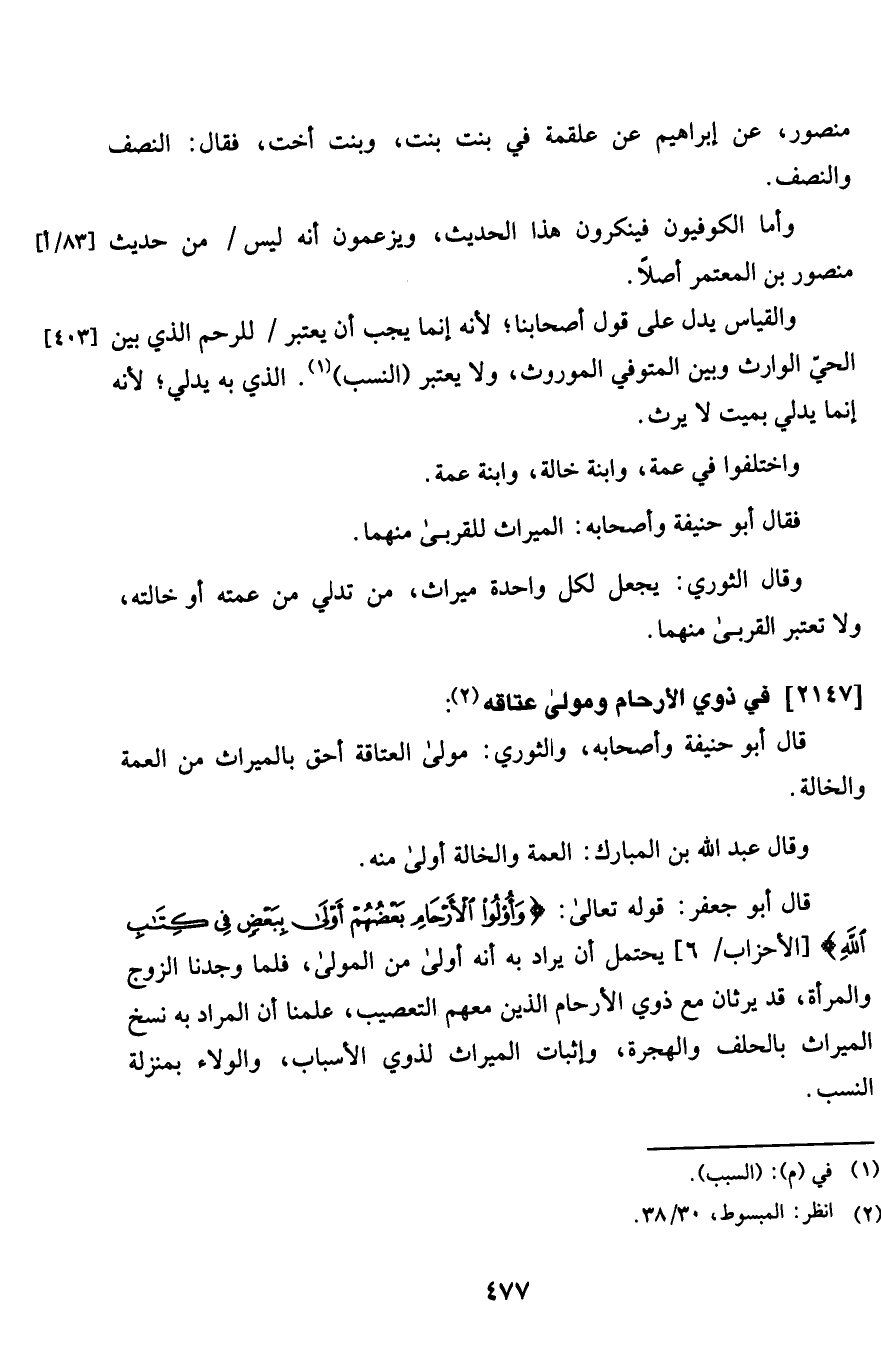 2147 - فِي ذَوي الْأَرْحَام وَمولى عتاقه