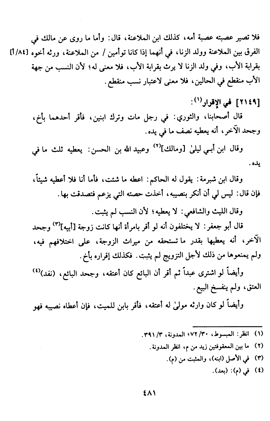 قَالَ أَصْحَابنَا وَالثَّوْري فِي رجل مَاتَ وَترك ابْنَيْنِ فَأقر أَحدهمَا بِأَخ وَجحد الآخر أَنه يُعْطِيهِ نصف مَا فِي يَده