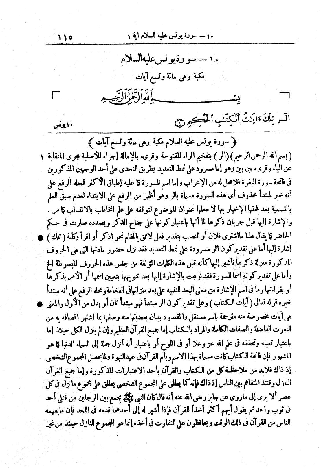 سورة يونس عليه السلام مكية وهى مائة وتسع آيات