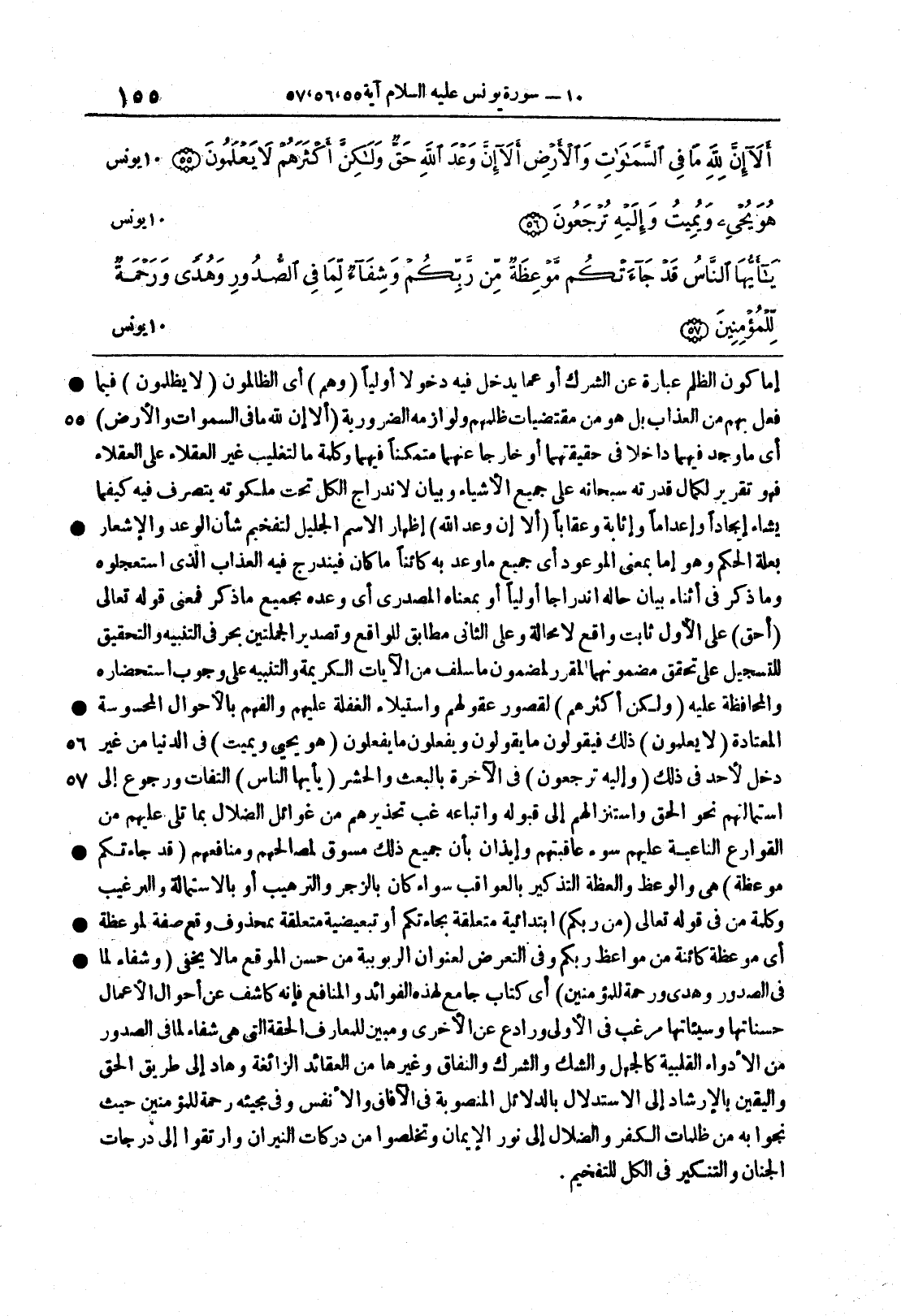 سورة يونس (155) إما كونُ الظلم عبارةً عن الشرك أو عما يدخُل فيه دخولاً أولياً
