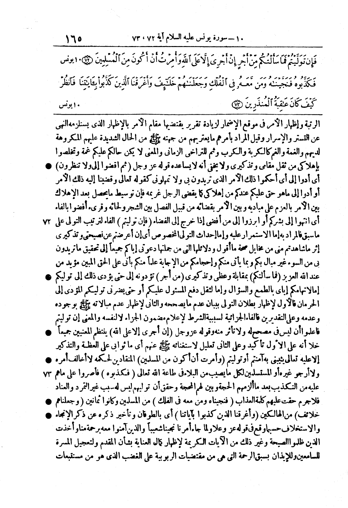 سورة يونس (72 73) الرتبة وإظهارُ الأمر في موقع الإضمارِ لزيادة تقريرٍ يقتضيها مقامُ الأمرِ بالإظهار الذي يستلزمه النهيُ عن التستر والإسرار وقيل المرادُ بأمرهم ما يعتريهم من جهته صلى الله عليه وسلم من الحال الشديدةِ عليهم المكروهةِ لديهم والغُمة والغمّ كالكُربة والكرب وثم للتراخي الزماني والمعنى لا يكن حالُكم عليكم غمةً وتخلّصوا بإهلاكي من ثِقَل مقامي وتذكيري ولا يخفى أنه لا يساعده قولُه عزَّ وجلَّ