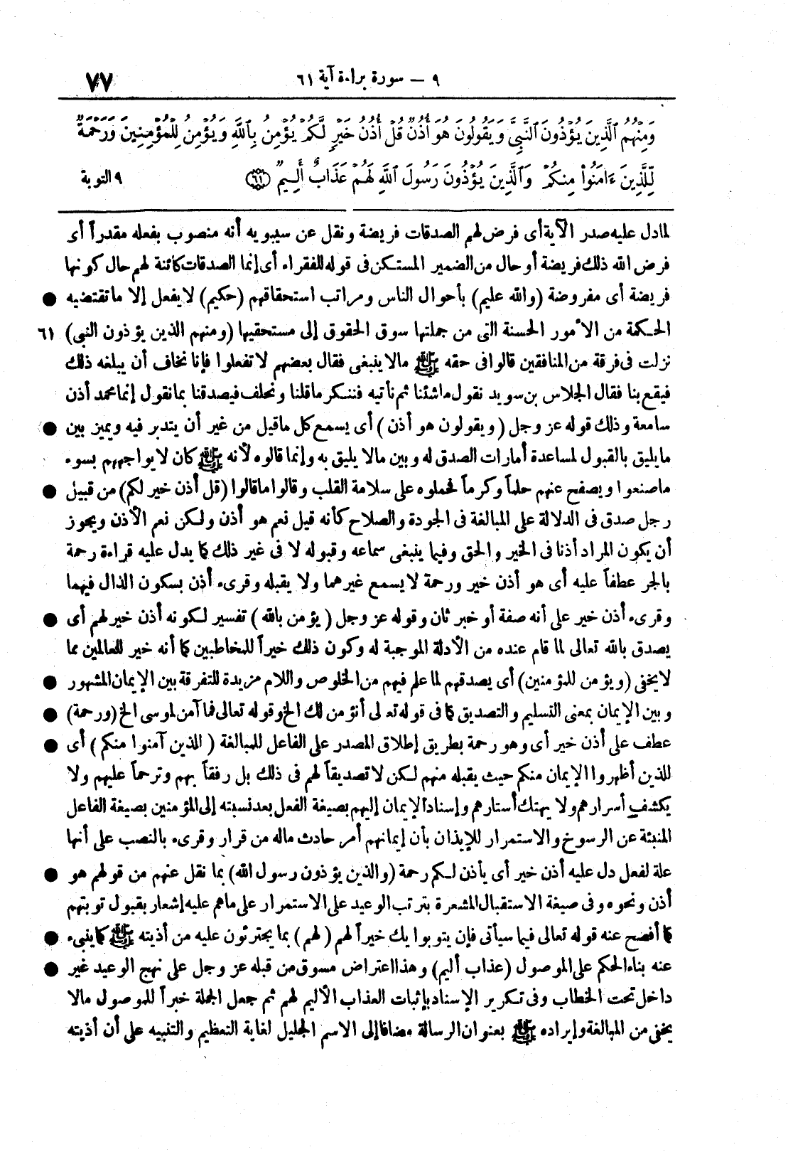 {وَمِنْهُمُ الذين يُؤْذُونَ النبى} نزلت في فِرقة من المنافقين قالوا في حقه صلى الله عليه وسلم مالا ينبغي فقال بعضُهم لا تفعلوا فإنا نخاف أن يبلُغه ذلك فيقعَ بنا فقال الجلاس بن سويد نقول ما شئنا ثم نأتيه فننكر ما قلنا ونحلِف فيصدقنا بما نقول إنما محمدٌ أذُنٌ سامعة وذلك قوله عز وجل