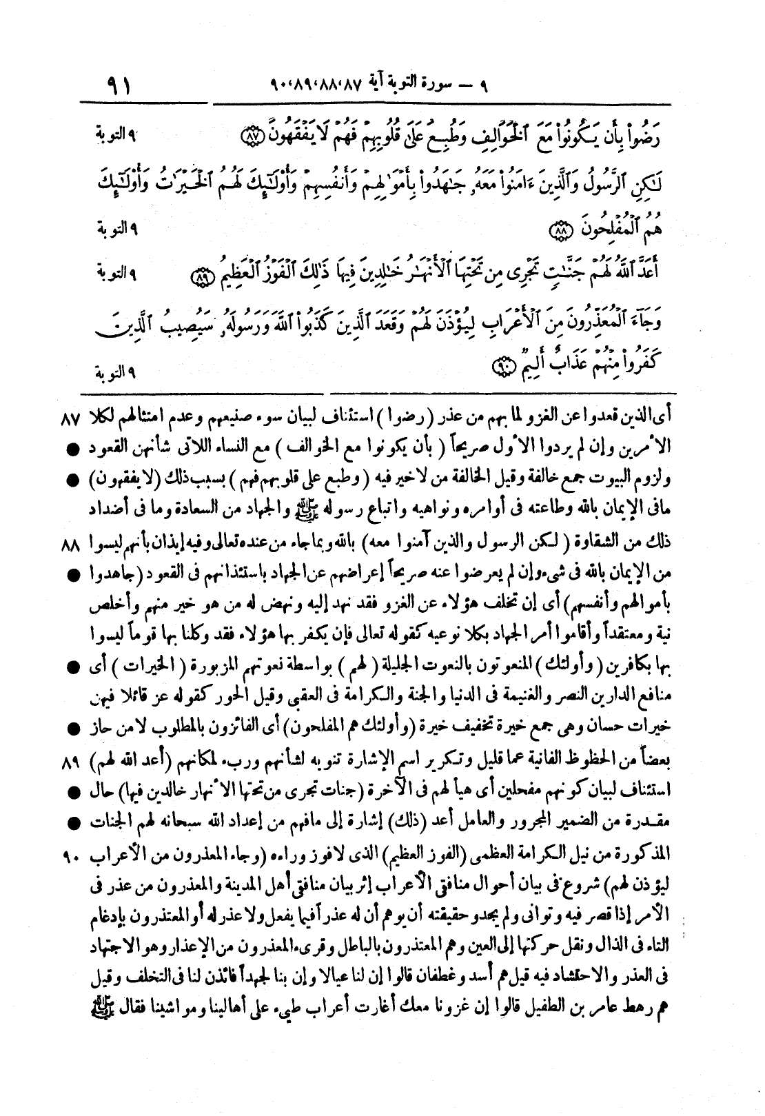 {وَجَاء المعذرون مِنَ الاعراب لِيُؤْذَنَ لَهُمْ} شروعٌ في بيان أحوالِ منافقي الأعرابِ إثرَ بيانِ منافقي أهلِ المدينةِ والمعذّرون من عذّر في الأمر إذا قصّر فيه وتوانى ولم يجدو حقيقته أن يوهِمَ أن له عذراً فيما يفعل ولا عذرَ له أو المعتذرون بإدغام التاءِ في الذال ونقلِ حركتِها إلى العين وهم المعتذرون بالباطل وقرئ المُعْذِرون من الإعذار وهو الاجتهاد في العذرُ والاحتشادُ فيه قيل هم أسَدٌ وغطَفانُ قالوا إن لنا عيالاً وإن بنا لجَهداً فأذن لنا في التخلف وقيل هم رهطُ عامِر بنِ الطفيل قالوا إن غزَوْنا معك أغارت أعرابُ طيءٍ على أهالينا ومواشينا فقال صلى الله عليه وسلم
