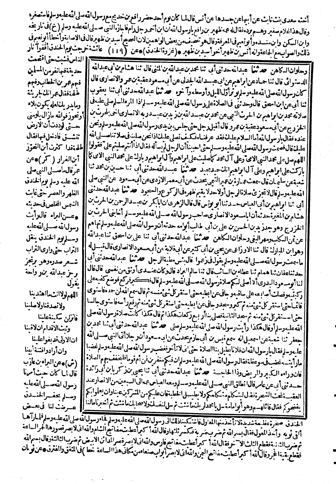 (17072) 17200- حَدَّثَنَا يَعْقُوبُ ، حَدَّثَنَا أَبِي ، عَنِ ابْنِ إِسْحَاقَ ، قَالَ : وَحَدَّثَنِي - فِي الصَّلاَةِ عَلَى رَسُولِ اللهِ صَلَّى اللَّهُ عَلَيْهِ وَسَلَّمَ إِذَا الْمَرْءُ الْمُسْلِمُ صَلَّى عَلَيْهِ فِي صَلاَتِهِ - مُحَمَّدُ بْنُ إِبْرَاهِيمَ بْنِ الْحَارِثِ التَّيْمِيُّ ، عَنْ مُحَمَّدِ بْنِ عَبْدِ اللهِ بْنِ زَيْدِ بْنِ عَبْدِ رَبِّهِ الأَنْصَارِيِّ ، أَخِي بَلْحَارِثِ بْنِ الْخَزْرَجِ ، عَنْ أَبِي مَسْعُودٍ عُقْبَةَ بْنِ عَمْرٍو ، قَالَ : أَقْبَلَ رَجُلٌ حَتَّى جَلَسَ بَيْنَ يَدَيْ رَسُولِ اللهِ صَلَّى اللَّهُ عَلَيْهِ وَسَلَّمَ وَنَحْنُ عِنْدَهُ ، فَقَالَ : يَا رَسُولَ اللهِ ، أَمَّا السَّلاَمُ عَلَيْكَ ، فَقَدْ عَرَفْنَاهُ ، فَكَيْفَ نُصَلِّي عَلَيْكَ إِذَا نَحْنُ صَلَّيْنَا فِي صَلاَتِنَا صَلَّى اللَّهُ عَلَيْكَ ؟ قَالَ : فَصَمَتَ رَسُولُ اللهِ صَلَّى اللَّهُ عَلَيْهِ وَسَلَّمَ حَتَّى أَحْبَبْنَا أَنَّ الرَّجُلَ لَمْ يَسْأَلْهُ . فَقَالَ : إِذَا أَنْتُمْ صَلَّيْتُمْ عَلَيَّ فَقُولُوا : اللَّهُمَّ صَلِّ عَلَى مُحَمَّدٍ النَّبِيِّ الأُمِّيِّ وَعَلَى آلِ مُحَمَّدٍ ، كَمَا صَلَّيْتَ عَلَى إِبْرَاهِيمَ وَآلِ إِبْرَاهِيمَ ، وَبَارِكْ عَلَى مُحَمَّدٍ النَّبِيِّ الأُمِّيِّ ، كَمَا بَارَكْتَ عَلَى إِبْرَاهِيمَ وَعَلَى آلِ إِبْرَاهِيمَ ، إِنَّكَ حَمِيدٌ مَجِيدٌ.