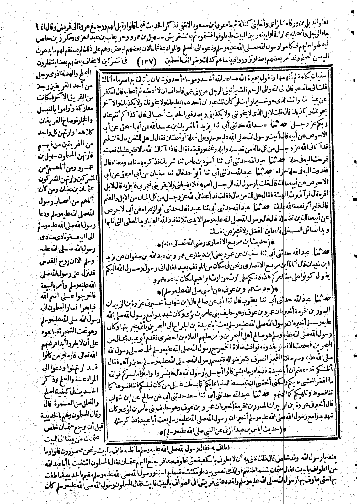 (17235) 17367- حَدَّثَنَا سَعْدٌ ، حَدَّثَنِي أَبِي ، عَنْ صَالِحٍ ، عَنِ ابْنِ شِهَابٍ ، قَالَ : أَخْبَرَنِي عُرْوَةُ بْنُ الزُّبَيْرِ ، أَنَّ الْمِسْوَرَ بْنَ مَخْرَمَةَ ، أَخْبَرَهُ ، أَنَّ عَمْرَو بْنَ عَوْفٍ ، وَهُوَ حَلِيفُ بَنِي عَامِرِ بْنِ لُؤَيٍّ ، وَكَانَ شَهِدَ بَدْرًا مَعَ رَسُولِ اللهِ صَلَّى اللَّهُ عَلَيْهِ وَسَلَّمَ أَخْبَرَهُ أَنَّ رَسُولَ اللهِ صَلَّى اللَّهُ عَلَيْهِ وَسَلَّمَ بَعَثَ أَبَا عُبَيْدَةَ .... فَذَكَرَ مِثْلَهُ.