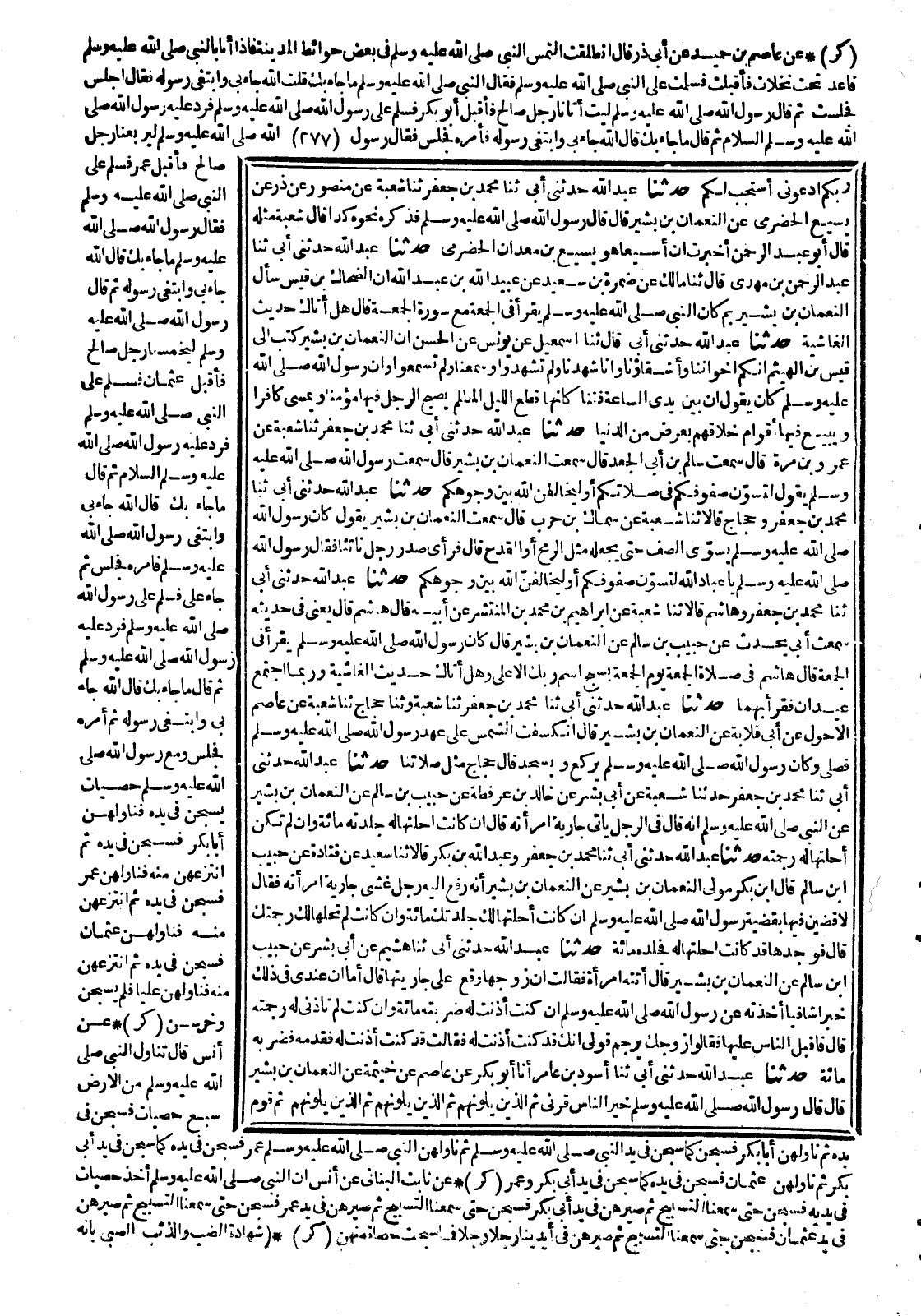 (18437) 18628- حَدَّثَنَا مُحَمَّدُ بْنُ جَعْفَرٍ ، حَدَّثَنَا شُعْبَةُ ، عَنْ مَنْصُورٍ ، عَنْ ذَرٍّ ، عَنْ يُسَيْعٍ الْحَضْرَمِيِّ ، عَنِ النُّعْمَانِ بْنِ بَشِيرٍ ، قَالَ : قَالَ رَسُولُ اللهِ صَلَّى اللَّهُ عَلَيْهِ وَسَلَّمَ : فَذَكَرَ نَحْوَهُ كَذَا قَالَ شُعْبَةُ مِثْلَهُ.