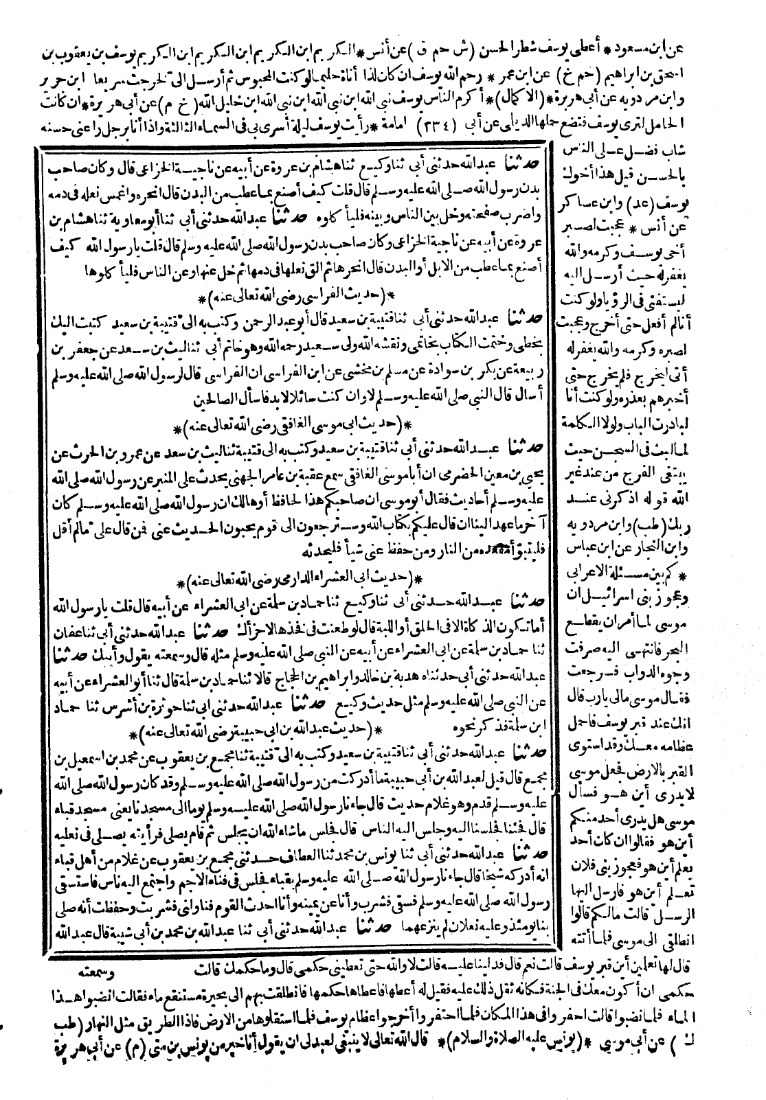 (18951) 19159- حَدَّثَنَا قُتَيْبَةُ بْنُ سَعِيدٍ ، (وَكَتَبَ (2) بِهِ إِلَيَّ قُتَيْبَةُ) ، حَدَّثَنَا مُجَمِّعُ بْنُ يَعْقُوبَ ، عَنْ مُحَمَّدِ بْنِ إِسْمَاعِيلَ بْنِ مُجَمِّعٍ قَالَ : قِيلَ لِعَبْدِ اللهِ بْنِ أَبِي حَبِيبَةَ : مَا أَدْرَكْتَ مِنْ رَسُولِ اللهِ صَلَّى اللَّهُ عَلَيْهِ وَسَلَّمَ ، وَقَدْ كَانَ رَسُولُ اللهِ صَلَّى اللَّهُ عَلَيْهِ وَسَلَّمَ قَدِمَ وَهُوَ غُلاَمٌ حَدِيثٌ ، قَالَ : جَاءَنَا رَسُولُ اللهِ صَلَّى اللَّهُ عَلَيْهِ وَسَلَّمَ يَوْمًا إِلَى مَسْجِدِنَا ، يَعْنِي مَسْجِدَ قُبَاءَ ، قَالَ : فَجِئْنَا فَجَلَسْنَا إِلَيْهِ ، وَجَلَسَ إِلَيْهِ النَّاسُ ، قَالَ : فَجَلَسَ مَا شَاءَ اللَّهُ أَنْ يَجْلِسَ ، ثُمَّ قَامَ يُصَلِّي فَرَأَيْتُهُ يُصَلِّي فِي نَعْلَيْهِ.