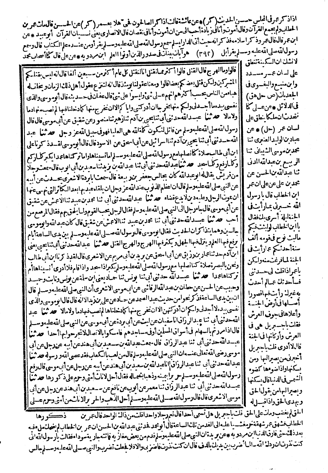 (19499) 19728- حَدَّثَنَا يُونُسُ ، حَدَّثَنَا حَمَّادٌ ، يَعْنِي ابْنَ سَلَمَةَ ، عَنْ يُونُسَ ، وَثَابِتٍ ، وَحُمَيْدٍ ، وَحَبِيبٍ ، عَنِ الْحَسَنِ ، عَنْ حِطَّانَ بْنِ عَبْدِ اللهِ الرَّقَاشِيِّ ، عَنْ أَبِي مُوسَى الأَشْعَرِيِّ ، أَنَّ النَّبِيَّ صَلَّى اللَّهُ عَلَيْهِ وَسَلَّمَ قَالَ : إِنَّ بَيْنَ يَدَيِ السَّاعَةِ ، فَذَكَرَ نَحْوًا مِنْ حَدِيثِ عَبْدِ الصَّمَدِ ، عَنْ حَمَّادٍ ، عَنْ عَلِيِّ بْنِ زَيْدٍ ، إِلاَّ أَنَّهُ ، قَالَ : قَالَ أَبُو مُوسَى : وَالَّذِي نَفْسِي بِيَدِهِ لاَ أَجِدُ لِي وَلَكُمْ إِنْ أَدْرَكْتُهُنَّ إِلاَّ أَنْ نَخْرُجَ مِنْهَا كَمَا دَخَلْنَاهَا لَمْ نُصِبْ فِيهَا دَمًا وَلاَ مَالاً.