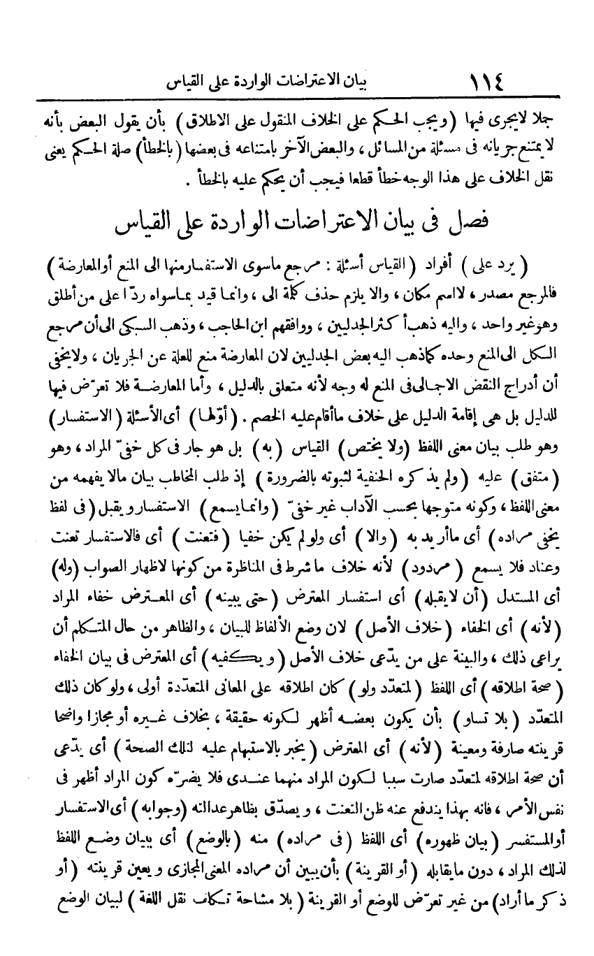 فصل فِي بَيَان الاعتراضات الْوَارِدَة على الْقيَاس