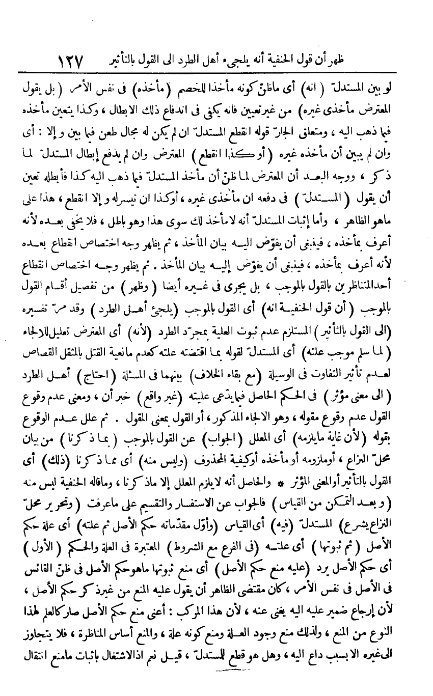 لَو بَين الْمُسْتَدلّ (أَنه) أَي مَا ظن كَونه مأخذا للخصم (مأخذه) فِي نفس الْأَمر (بل يَقُول الْمُعْتَرض مأخذي غَيره) من غير تعْيين فَإِنَّهُ يَكْفِي فِي اندفاع ذَلِك الْإِبْطَال، وَكَذَا يتَعَيَّن مأخذه فِيمَا ذهب إِلَيْهِ، ومتعلق الْجَار قَوْله انْقَطع الْمُسْتَدلّ إِن لم يكن لَهُ مجَال طعن فِيمَا بَين وَإِلَّا: أَي وَإِن لم يبين أَن مأخذه غَيره (أَو كَذَا انْقَطع) الْمُعْتَرض وَإِن لم يدْفع إبِْطَال الْمُسْتَدلّ لما ذكر، وَوجه الْبعد أَن الْمُعْتَرض لما ظن أَن مَأْخَذ الْمُسْتَدلّ فِيمَا ذهب إِلَيْهِ كَذَا فأبطله تعين أَن يَقُول (الْمُسْتَدلّ) فِي دَفعه أَن مأخذي غَيره، أَو كَذَا أَن تيَسّر لَهُ، وَإِلَّا انْقَطع، هَذَا على مَا هُوَ الظَّاهِر، وَأما إِثْبَات الْمُسْتَدلّ أَنه لَا مَأْخَذ لَك سوى هَذَا وَهُوَ بَاطِل، فَلَا يخفى بعده لِأَنَّهُ أعرف بمأخذه، فَيَنْبَغِي أَن يُفَوض إِلَيْهِ بَيَان المأخذ، ثمَّ يظْهر وَجه اخْتِصَاص انْقِطَاع بعده لِأَنَّهُ أعرف بمأخذه، فَيَنْبَغِي أَن يُفَوض إِلَيْهِ بَيَان المأخذ، ثمَّ يظْهر وَجه اخْتِصَاص انْقِطَاع أحد المتناظرين بالْقَوْل بِالْمُوجبِ، بل يجْرِي فِي غَيره أَيْضا (وَظهر) من تَفْصِيل أَقسَام القَوْل بِالْمُوجبِ (أَن قَول الْحَنَفِيَّة أَنه) أَي القَوْل بِالْمُوجبِ (يلجئ أهل الطَّرْد) وَقد مر تَفْسِيره (إِلَى القَوْل بالتأثير) المستلزم عدم ثُبُوت الْعلية بِمُجَرَّد الطَّرْد (لِأَنَّهُ) أَي الْمُعْتَرض تَعْلِيل للإلجاء (لما سلم مُوجب علته) أَي الْمُسْتَدلّ لقَوْله بِمَا اقتضته علته كَعَدم مانعية الْقَتْل بالمثقل الْقصاص لعدم تَأْثِير التَّفَاوُت فِي الْوَسِيلَة (مَعَ بَقَاء الْخلاف) بَينهمَا فِي المسئلة (احْتَاجَ) أهل الطَّرْد (إِلَى معنى مُؤثر) فِي الحكم الْحَاصِل فِيمَا يدعى عليته (غير وَاقع) خبر أَن، وَمعنى عدم وُقُوع القَوْل عدم وُقُوع مقوله، وَهُوَ الإلجاء الْمَذْكُور، أَو القَوْل بِمَعْنى الْمَقُول. ثمَّ علل عدم الْوُقُوع بقوله (لِأَن غَايَة مَا يلْزمه) أَي الْمُعَلل (الْجَواب) عَن القَوْل بِالْمُوجبِ (بِمَا ذكرنَا) من بَيَان مَحل النزاع، أَو ملزومه أَو مأخذه أَو كَيْفيَّة الْمَحْذُوف (وَلَيْسَ مِنْهُ) أَي مِمَّا ذكرنَا (ذَلِك) أَي القَوْل بالتأثير أَو الْمَعْنى الْمُؤثر وَالْحَاصِل أَنه لَا يلْزم الْمُعَلل إِلَّا مَا ذكرنَا، وَمَا قَالَه الْحَنَفِيَّة لَيْسَ مِنْهُ (وَبعد التَّمَكُّن من الْقيَاس) فَالْجَوَاب عَن الاستفسار والتقسيم على مَا عرفت (وتحرير مَحل النزاع يشرع) الْمُسْتَدلّ (فِيهِ) أَي الْقيَاس وَأول مقدماته حكم الأَصْل ثمَّ علته) أَي عِلّة حكم الأَصْل يرد (ثمَّ ثُبُوتهَا) أَي علته (فِي الْفَرْع مَعَ الشُّرُوط) الْمُعْتَبرَة فِي الْعلَّة وَالْحكم (الأول) أَي حكم الأَصْل يرد (عَلَيْهِ منع حكم الأَصْل) أَي منع ثُبُوتهَا مَا هُوَ حكم الأَصْل فِي ظن القائس فِي الأَصْل فِي نفس الْأَمر، كَانَ مُقْتَضى الظَّاهِر أَن يَقُول عَلَيْهِ الْمَنْع من غير ذكر حكم الأَصْل، لِأَن إرجاع ضمير عَلَيْهِ إِلَيْهِ يُغني عَنهُ، لِأَن هَذَا الْمركب: أَعنِي منع حكم الأَصْل صَار كَالْعلمِ لهَذَا النَّوْع من الْمَنْع، وَلذَلِك منع وجود الْعلَّة وَمنع كَونه عِلّة، وَالْمَنْع أساس المناظرة، فَلَا يتَجَاوَز إِلَى غَيره إِلَّا بِسَبَب دَاع إِلَيْهِ، وَهل هُوَ قطع للمستدل، قيل نعم إِذْ الِاشْتِغَال بِإِثْبَات مَا منع انْتِقَال