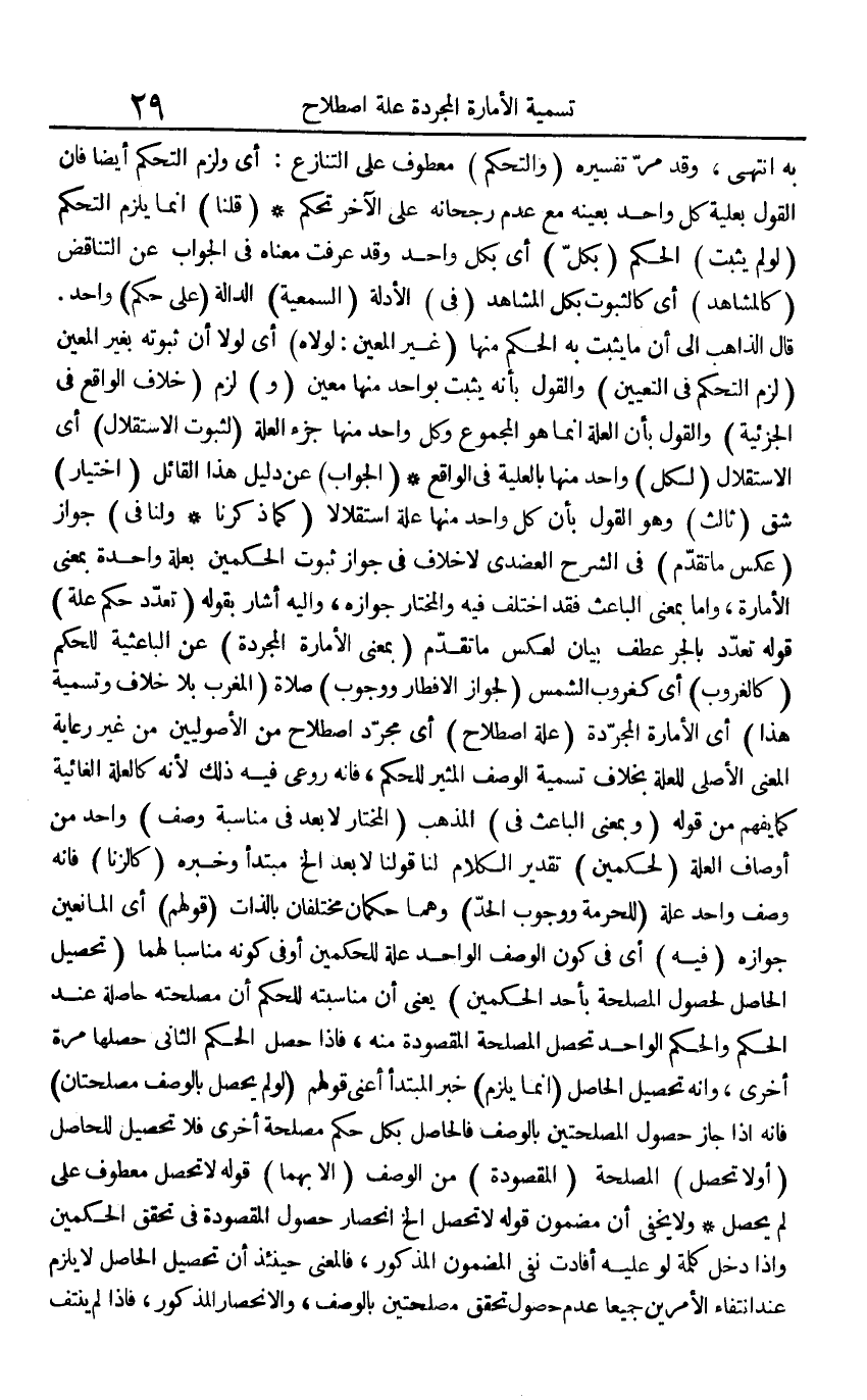 بِهِ انْتهى، وَقد مر تَفْسِيره (والتحكم) مَعْطُوف على التَّنَازُع: أَي وَلزِمَ التحكم أَيْضا فَإِن القَوْل بعلية كل وَاحِد بِعَيْنِه مَعَ عدم رجحانه على الآخر تحكم (قُلْنَا) إِنَّمَا يلْزم التحكم (لَو لم يثبت) الحكم (بِكُل) أَي بِكُل وَاحِد وَقد عرفت مَعْنَاهُ فِي الْجَواب عَن التَّنَاقُض (كالمشاهد) أَي كالثبوت بِكُل الْمشَاهد (فِي) الْأَدِلَّة (السمعية) الدَّالَّة (على حكم) وَاحِد. قَالَ الذَّاهِب إِلَى أَن مَا يثبت بِهِ الحكم مِنْهَا (غير الْمعِين: لولاه) أَي لَوْلَا أَن ثُبُوته بِغَيْر الْمعِين (لزم التحكم فِي التَّعْيِين) وَالْقَوْل بِأَنَّهُ يثبت بِوَاحِد مِنْهَا معِين (و) لزم (خلاف الْوَاقِع فِي الْجُزْئِيَّة) وَالْقَوْل بِأَن الْعلَّة إِنَّمَا هُوَ الْمَجْمُوع وكل وَاحِد مِنْهَا جُزْء الْعلَّة (لثُبُوت الِاسْتِقْلَال) أَي الِاسْتِقْلَال (لكل) وَاحِد مِنْهَا بالعلية فِي الْوَاقِع (الْجَواب) عَن دَلِيل هَذَا الْقَائِل (اخْتِيَار) شقّ (ثَالِث) وَهُوَ القَوْل بِأَن كل وَاحِد مِنْهَا عِلّة اسْتِقْلَالا (كَمَا ذكرنَا وَلنَا فِي) جَوَاز (عكس مَا تقدم) فِي الشَّرْح العضدي لَا خلاف فِي جَوَاز ثُبُوت الْحكمَيْنِ بعلة وَاحِدَة بِمَعْنى الأمارة، وَإِمَّا بِمَعْنى الْبَاعِث فقد اخْتلف فِيهِ وَالْمُخْتَار جَوَازه، وَإِلَيْهِ أَشَارَ بقوله (تعدد حكم عِلّة) قَوْله تعدد بِالْجَرِّ عطف بَيَان لعكس مَا تقدم (بِمَعْنى الأمارة الْمُجَرَّدَة) عَن الباعثية للْحكم (كالغروب) أَي كغروب الشَّمْس (لجَوَاز الْإِفْطَار وَوُجُوب) صَلَاة (الْمغرب بِلَا خلاف وَتَسْمِيَة هَذَا) أَي الأمارة الْمُجَرَّدَة (عِلّة اصْطِلَاح) أَي مُجَرّد اصْطِلَاح من الْأُصُولِيِّينَ من غير رِعَايَة الْمَعْنى الْأَصْلِيّ لِلْعِلَّةِ بِخِلَاف تَسْمِيَة الْوَصْف المثير للْحكم، فَإِنَّهُ روعي فِيهِ ذَلِك لِأَنَّهُ كالعلة الغائية كَمَا يفهم من قَوْله (وَبِمَعْنى الْبَاعِث فِي) الْمَذْهَب (الْمُخْتَار لَا بعد فِي مُنَاسبَة وصف) وَاحِد من أَوْصَاف الْعلَّة (لحكمين) تَقْدِير الْكَلَام لنا قَوْلنَا لَا بعد الخ مُبْتَدأ وَخَبره (كَالزِّنَا) فَإِنَّهُ وصف وَاحِد عِلّة (للْحُرْمَة وَوُجُوب الْحَد) وهما حكمان مُخْتَلِفَانِ بِالذَّاتِ (قَوْلهم) أَي المانعين جَوَازه (فِيهِ) أَي فِي كَون الْوَصْف الْوَاحِد عِلّة لِلْحكمَيْنِ أَو فِي كَونه مناسبا لَهما (تَحْصِيل الْحَاصِل لحُصُول الْمصلحَة بِأحد الْحكمَيْنِ) يَعْنِي أَن مناسبته للْحكم أَن مصْلحَته حَاصِلَة عِنْد الحكم وَالْحكم الْوَاحِد تحصل الْمصلحَة الْمَقْصُودَة مِنْهُ، فَإِذا حصل الحكم الثَّانِي حصلها مرّة أُخْرَى، وَأَنه تَحْصِيل الْحَاصِل (إِنَّمَا يلْزم) خبر الْمُبْتَدَأ أَعنِي قَوْلهم (لَو لم يحصل بِالْوَصْفِ مصلحتان) فَإِنَّهُ إِذا جَازَ حُصُول المصلحتين بِالْوَصْفِ فَالْحَاصِل بِكُل حكم مصلحَة أُخْرَى فَلَا تَحْصِيل للحاصل (أَو لَا تحصل) الْمصلحَة (الْمَقْصُودَة) من الْوَصْف (إِلَّا بهما) قَوْله لَا تحصل مَعْطُوف على لم يحصل وَلَا يخفى أَن مَضْمُون قَوْله لَا تحصل الخ انحصار حُصُول الْمَقْصُودَة فِي تحقق الْحكمَيْنِ وَإِذا دخل كلمة لَو عَلَيْهِ أفادت نفي الْمَضْمُون الْمَذْكُور، فَالْمَعْنى حِينَئِذٍ أَن تَحْصِيل الْحَاصِل لَا يلْزم عِنْد انْتِفَاء الْأَمريْنِ جَمِيعًا عدم حُصُول تحقق مصلحتين بِالْوَصْفِ، والانحصار الْمَذْكُور، فَإِذا لم ينتف