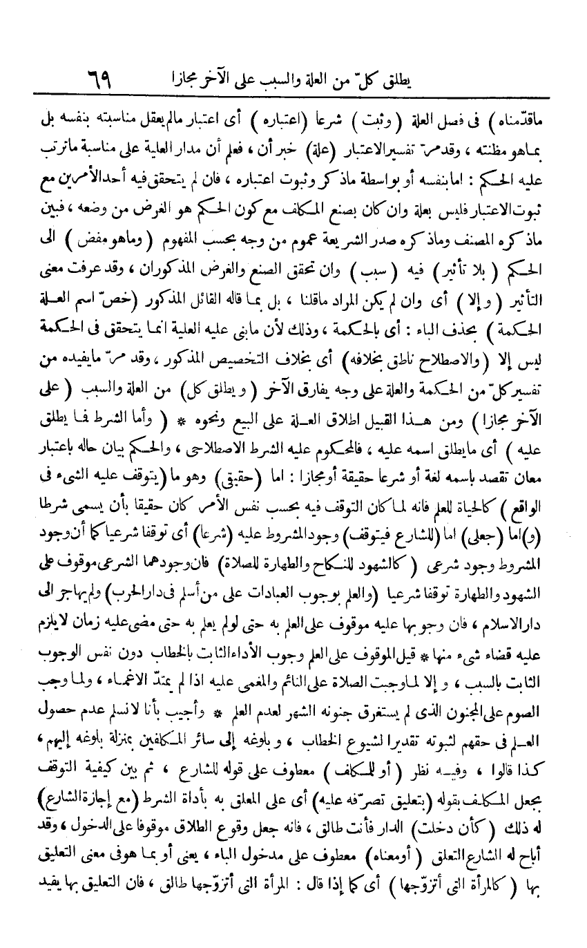 مَا قدمْنَاهُ) فِي فصل الْعلَّة (وَثَبت) شرعا (اعْتِبَاره) أَي اعْتِبَار مَا لم يعقل مناسبته بِنَفسِهِ بل بِمَا هُوَ مظنته، وَقد مر تَفْسِير الِاعْتِبَار (عِلّة) خبر أَن، فَعلم أَن مدَار الْعلية على مُنَاسبَة مَا ترَتّب عَلَيْهِ الحكم: أما بِنَفسِهِ أَو بِوَاسِطَة مَا ذكر وَثُبُوت اعْتِبَاره، فَإِن لم يتَحَقَّق فِيهِ أحد الْأَمريْنِ مَعَ ثُبُوت الِاعْتِبَار فَلَيْسَ بعلة وَإِن كَانَ بصنع الْمُكَلف مَعَ كَون الحكم هُوَ الْغَرَض من وَضعه، فَبين مَا ذكره المُصَنّف وَمَا ذكره صدر الشَّرِيعَة عُمُوم من وَجه بِحَسب الْمَفْهُوم (وَمَا هُوَ مفض) إِلَى الحكم (بِلَا تَأْثِير) فِيهِ (سَبَب) وَإِن تحقق الصنع وَالْغَرَض الْمَذْكُورَان، وَقد عرفت معنى التَّأْثِير (وَإِلَّا) أَي وَإِن لم يكن المُرَاد مَا قُلْنَا، بل بِمَا قَالَه الْقَائِل الْمَذْكُور (خص اسْم الْعلَّة الْحِكْمَة) بِحَذْف الْبَاء: أَي بالحكمة، وَذَلِكَ لِأَن مَا بنى عَلَيْهِ الْعلية إِنَّمَا يتَحَقَّق فِي الْحِكْمَة لَيْسَ إِلَّا (والاصطلاح نَاطِق بِخِلَافِهِ) أَي بِخِلَاف التَّخْصِيص الْمَذْكُور، وَقد مر مَا يفِيدهُ من تَفْسِير كل من الْحِكْمَة وَالْعلَّة على وَجه يُفَارق الآخر (وَيُطلق كل) من الْعلَّة وَالسَّبَب (على الآخر مجَازًا) وَمن هَذَا الْقَبِيل إِطْلَاق الْعلَّة على البيع وَنَحْوه (وَأما الشَّرْط فَمَا يُطلق عَلَيْهِ) أَي مَا يُطلق اسْمه عَلَيْهِ، فالمحكوم عَلَيْهِ الشَّرْط الاصطلاحي، وَالْحكم بَيَان حَاله بِاعْتِبَار معَان تقصد باسمه لُغَة أَو شرعا حَقِيقَة أَو مجَازًا: أما (حَقِيقِيّ) وَهُوَ مَا (يتَوَقَّف عَلَيْهِ الشَّيْء فِي الْوَاقِع) كالحياة للْعلم فَإِنَّهُ لما كَانَ التَّوَقُّف فِيهِ بِحَسب نفس الْأَمر كَانَ حَقِيقا بِأَن يُسمى شرطا (و) أما (جعلى) أما (للشارع فَيتَوَقَّف) وجود الْمَشْرُوط عَلَيْهِ (شرعا) أَي توقفا شَرْعِيًّا كَمَا أَن وجود الْمَشْرُوط وجود شَرْعِي (كالشهود للنِّكَاح وَالطَّهَارَة للصَّلَاة) فَإِن وجودهما الشَّرْعِيّ مَوْقُوف على الشُّهُود وَالطَّهَارَة توقفا شَرْعِيًّا (وَالْعلم بِوُجُوب الْعِبَادَات على من أسلم فِي دَار الْحَرْب) وَلم يُهَاجر إِلَى دَار الْإِسْلَام، فَإِن وُجُوبهَا عَلَيْهِ مَوْقُوف على الْعلم بِهِ حَتَّى لَو لم يعلم بِهِ حَتَّى مضى عَلَيْهِ زمَان لَا يلْزم عَلَيْهِ قَضَاء شَيْء مِنْهَا قيل الْمَوْقُوف على الْعلم وجوب الْأَدَاء الثَّابِت بِالْخِطَابِ دون نفس الْوُجُوب الثَّابِت بِالسَّبَبِ، وَإِلَّا لما وَجَبت الصَّلَاة على النَّائِم والمغمى عَلَيْهِ إِذا لم يَمْتَد الْإِغْمَاء، وَلما وَجب الصَّوْم على الْمَجْنُون الَّذِي لم يسْتَغْرق جُنُونه الشَّهْر لعدم الْعلم وَأجِيب بِأَنا لَا نسلم عدم حُصُول الْعلم فِي حَقهم لثُبُوته تَقْديرا لشيوع الْخطاب، وبلوغه إِلَى سَائِر الْمُكَلّفين بِمَنْزِلَة بُلُوغه إِلَيْهِم، كَذَا قَالُوا: وَفِيه نظر (أَو للمكلف) مَعْطُوف على قَوْله للشارع، ثمَّ بَين كَيْفيَّة التَّوَقُّف يَجْعَل الْمُكَلف بقوله (بتعليق تصرفه عَلَيْهِ) أَي على الْمُعَلق بِهِ بأداة الشَّرْط (مَعَ إجَازَة الشَّارِع) لَهُ ذَلِك (كَأَن دخلت) الدَّار فَأَنت طَالِق، فَإِنَّهُ جعل وُقُوع الطَّلَاق مَوْقُوفا على الدُّخُول، وَقد أَبَاحَ لَهُ الشَّارِع التَّعَلُّق (أَو مَعْنَاهُ) مَعْطُوف على مَدْخُول الْبَاء، يَعْنِي أَو بِمَا هُوَ فِي معنى التَّعْلِيق بهَا (كَالْمَرْأَةِ الَّتِي أَتَزَوَّجهَا) أَي كَمَا إِذا قَالَ: الْمَرْأَة الَّتِي أَتَزَوَّجهَا طَالِق، فَإِن التَّعْلِيق بهَا يُفِيد