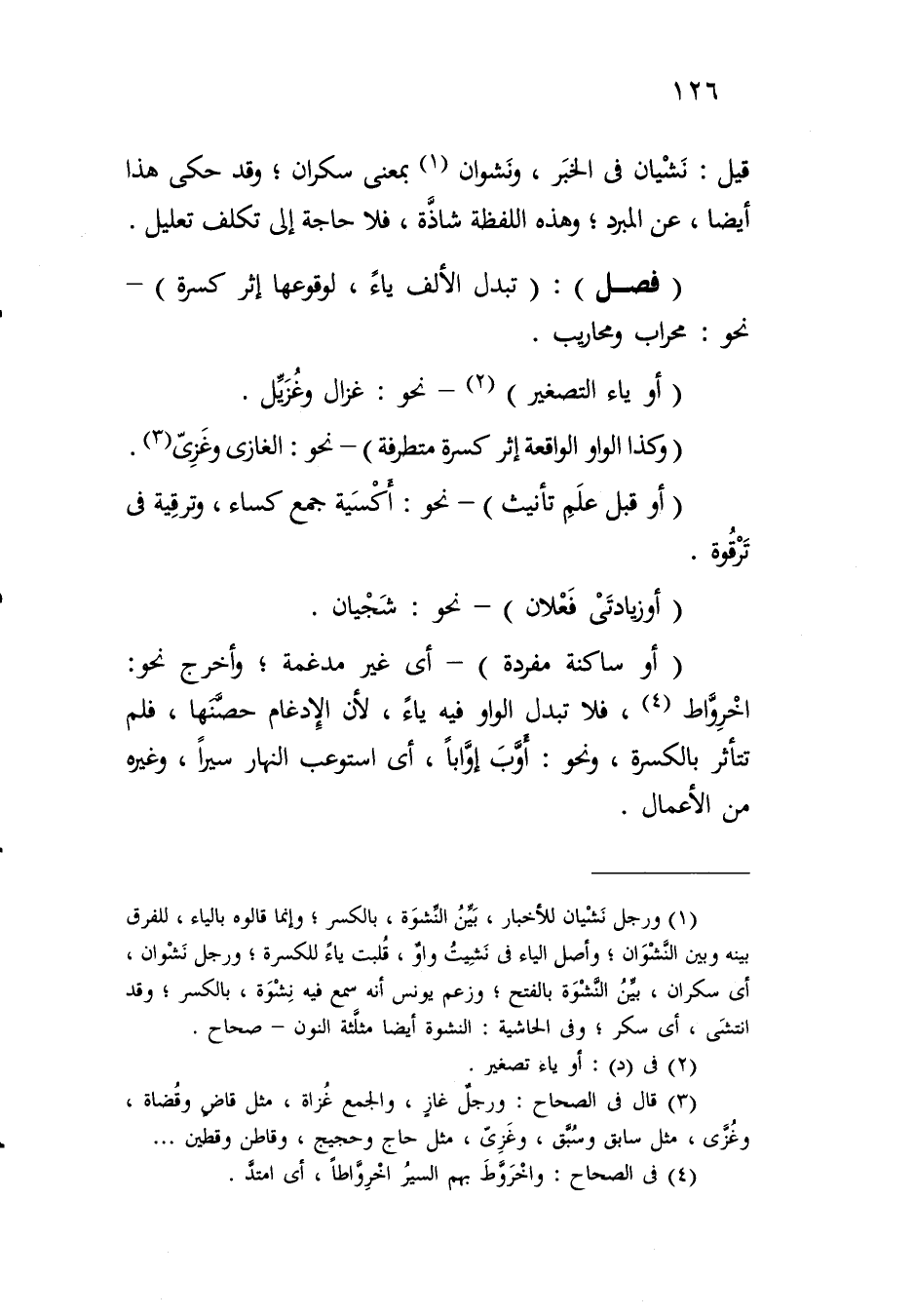 (فصل): (تبدل الألف ياء، لوقوعها إثر كسرة) - نحو: محراب ومحاريب.