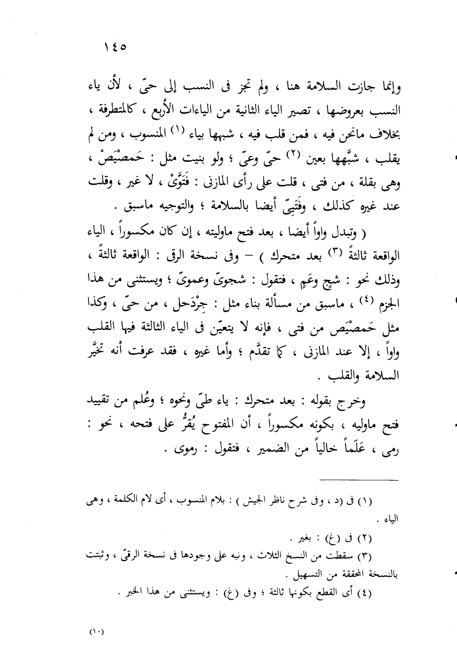 وإنما جازت السلامة هنا، ولم تجز في النسب إلى حي، لأن ياء النسب بعروضها، تصير الياء الثانية من الياءات الأربع، كالمتطرفة، بخلاف ما نحن فيه، فمن قلب فيه، شبهها بياء المنسوب، ومن لم يقلب، شبهها بعين حي وعي؛ ولو بنيت مثل: حمصيص، وهي بقلة، من فتى، قلت على رأي المازني: فتوي، لا غير، وقلت عند غيره كذلك، وفتيي أيضاً بالسلامة؛ والتوجيه ما سبق.