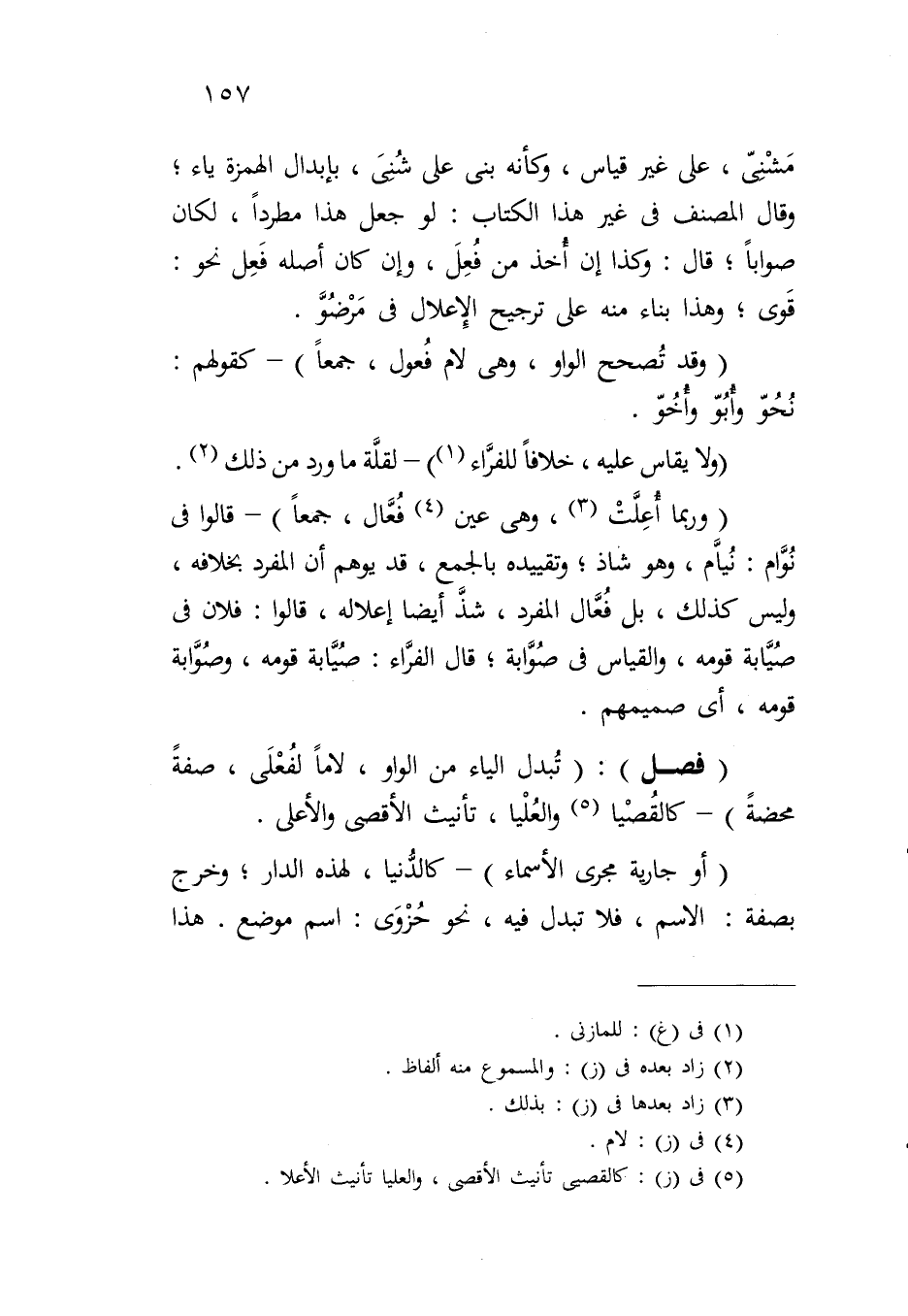 (فصل): (تبدل الياء من الواو، لاماً لفعلى، صفة محضة) - كالقُصْيا والعليا، تأنيث الأقصى والأعلى.