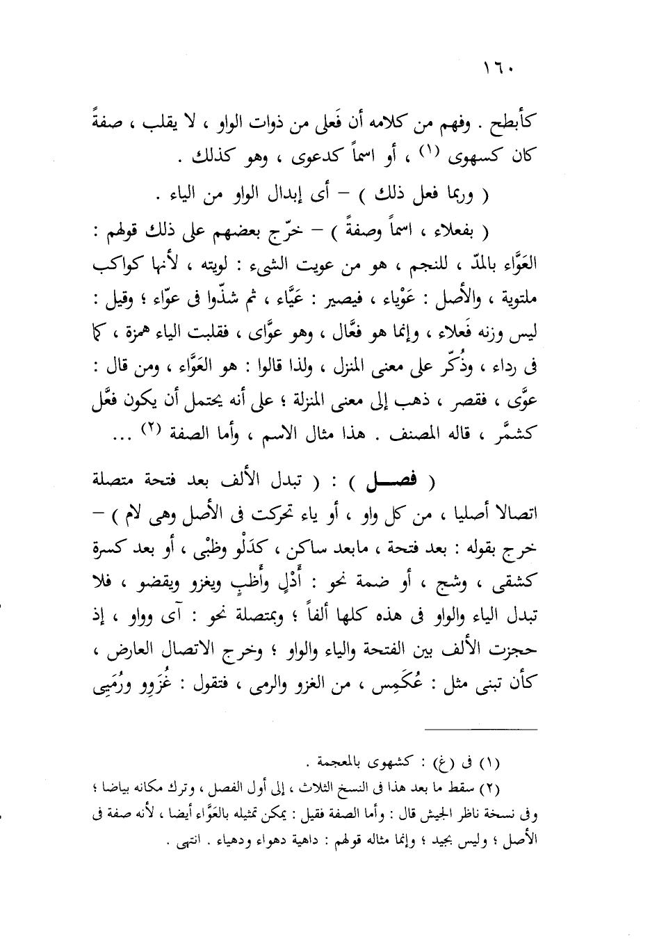 كأبطح. وفهم من كلامه أن فعلى من ذوات الواو، لا يقلب، صفة كان كسهوى، أو اسماً كدعوى، وهو كذلك.