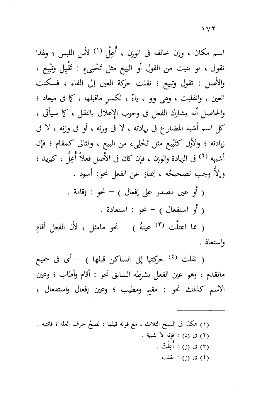 (نقلت حركتها إلى الساكن قبلها) - أي في جميع ما تقدم، وهو عين الفعل بشرطه السابق نحو: أقام وأطاب؛ وعين الاسم كذلك نحو: مقيم ومطيب؛ وعين إفعال واستفعال،