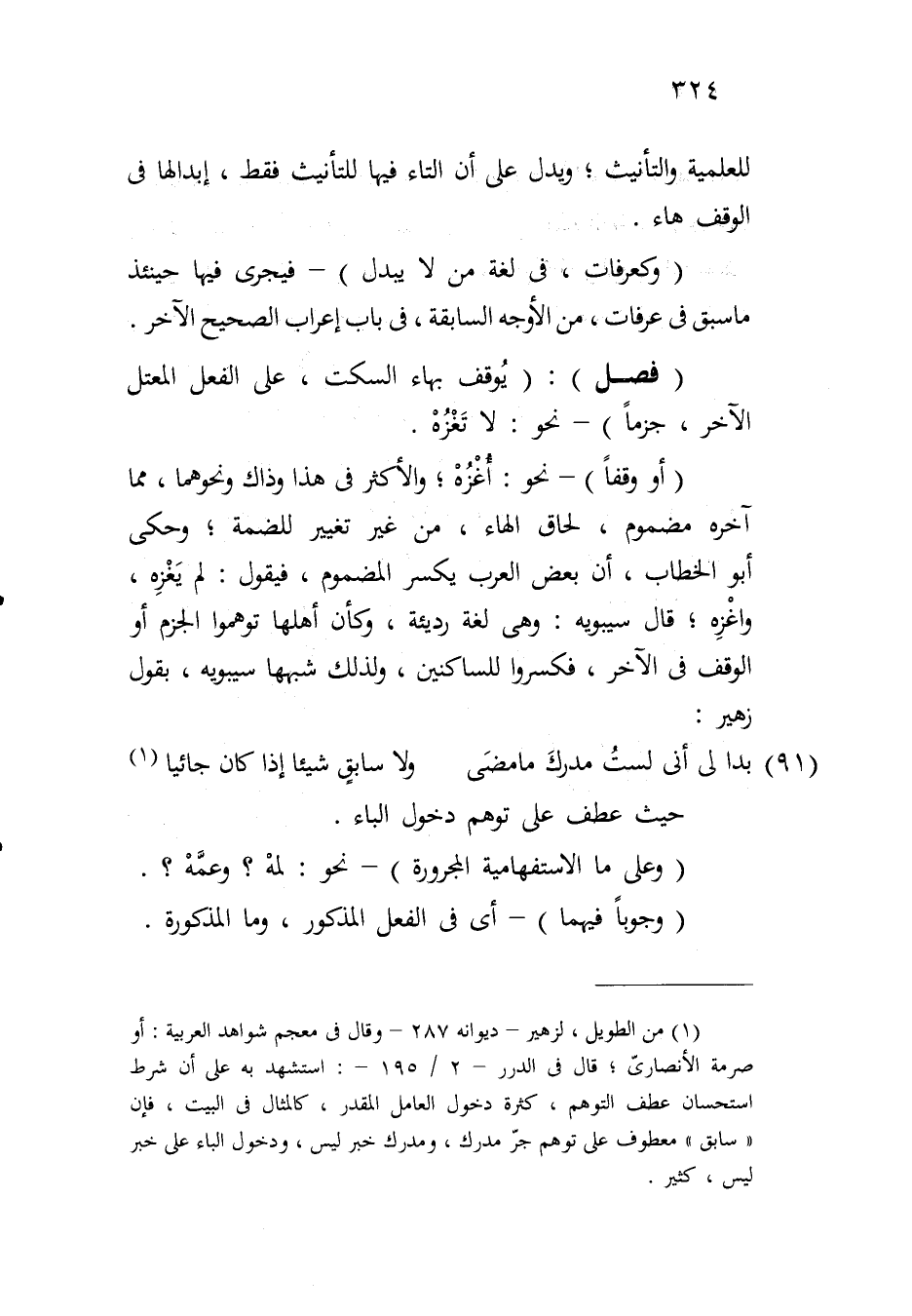 (أو وقفاً) - نحو: أغزه؛ والأكثر في هذا وذاك ونحوهما، مما آخره مضموم، لحاق الهاء، من غير تغيير للضمة؛ وحكى أبو الخطاب، أن بعض العرب يكسر المضموم، فيقول: لم يغزه، واغزه؛ قال سيبويه: وهي لغة رديئة، وكأن أهلها توهموا الجزم أو الوقف في الآخر، فكسروا للساكنين، ولذلك شبهها سيبويه، بقول زهير: