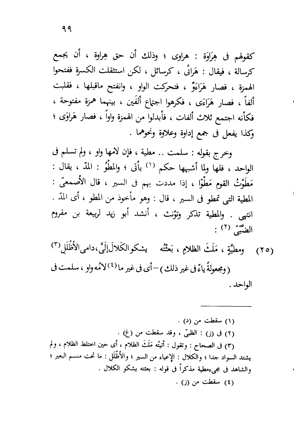 (25) ومطية، ملث الظلام، بعثته ... يشكو الكلال إلي، دامى الأظلل