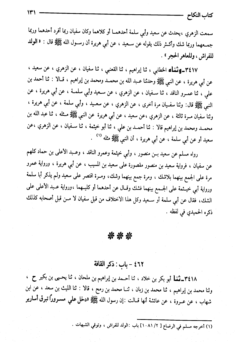462 - بَابُ ذِكْرِ الْقَافَةِ