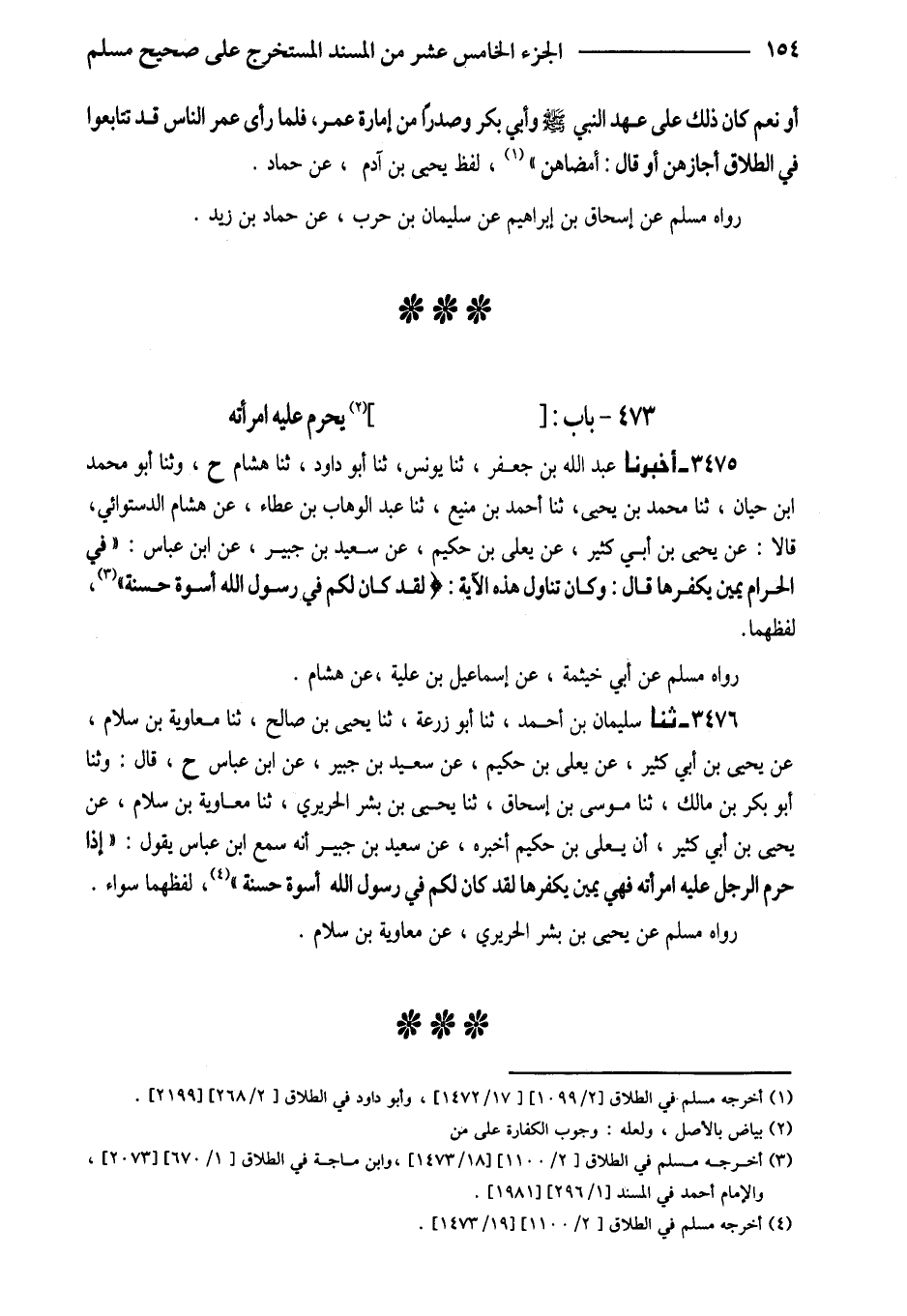 رَوَاهُ مُسْلِمٌ عَنْ إِسْحَاقَ بْنِ إِبْرَاهِيمَ عَنْ سُلَيْمَانَ بْنِ حَرْبٍ عَنْ حَمَّادِ بْنِ زَيْدٍ