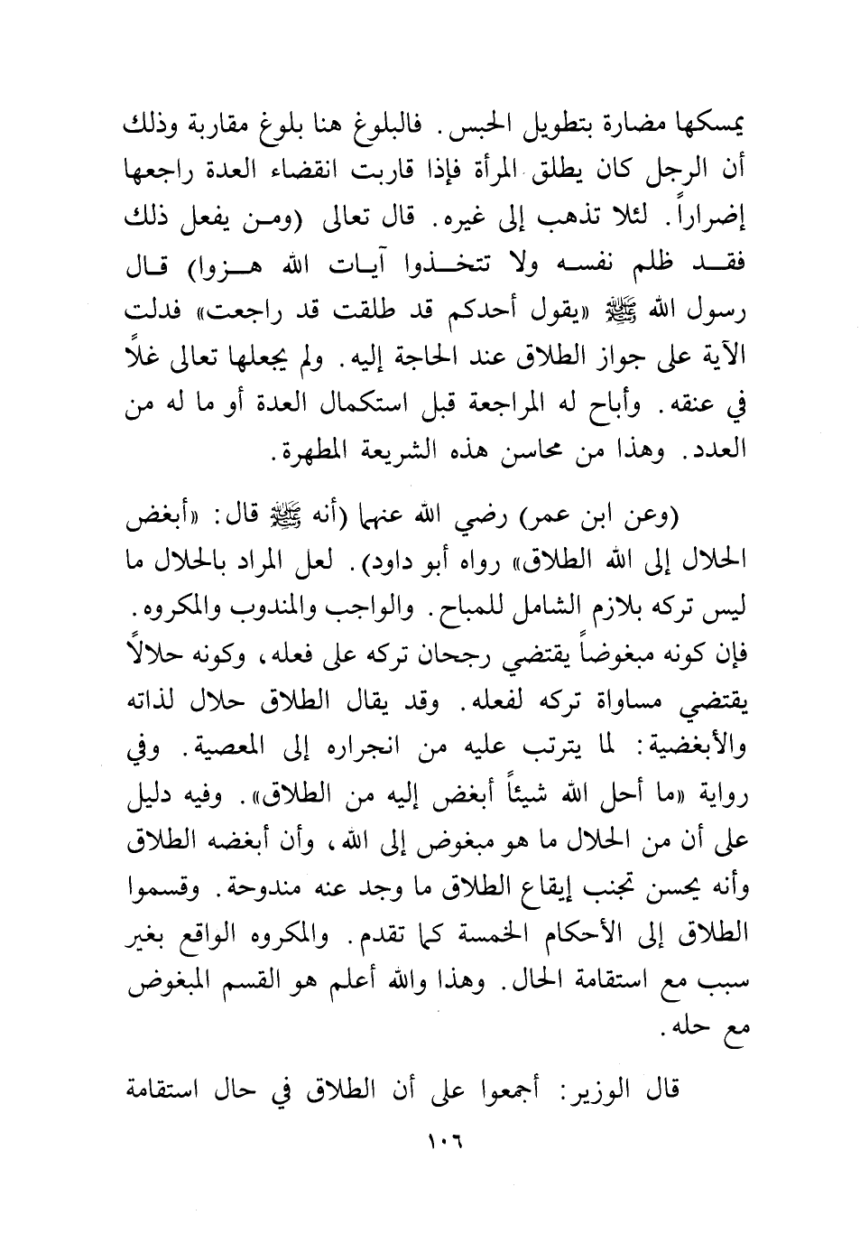 قال الوزير: أجمعوا على أن الطلاق في حال استقامة