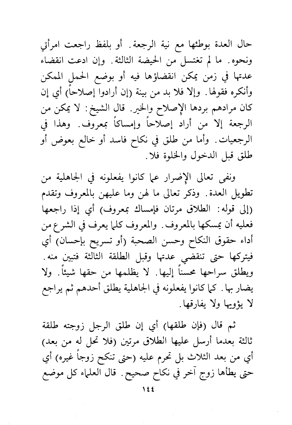 ونفى تعالى الإضرار عما كانوا يفعلونه في الجاهية من تطويل العدة، وذكر تعالى ما لهن وما عليهن بالمعروف وتقدم (إلى قوله: {الطَّلَاقُ مَرَّتَانِ فَإِمْسَاكٌ بِمَعْرُوفٍ} أي إذا راجعها فعليه أن يمسكها بالمعروف، والمعروف كل ما يعرف في الشرع من أداء حقوق النكاح وحسن الصحبة {أَوْ تَسْرِيحٌ بِإِحْسَانٍ} أي فيتركها حتى تنقضي عدتها وقبل الطلقة الثالثة فتبين منه ويطلق سراحها محسنًا إليها، لا يظلمها من حقها شيئًا ولا يضار بها، كما كانوا يفعلونه في الجاهلية يطلق أحدهم ثم يراجع لا يؤويها ولا يفارقها.