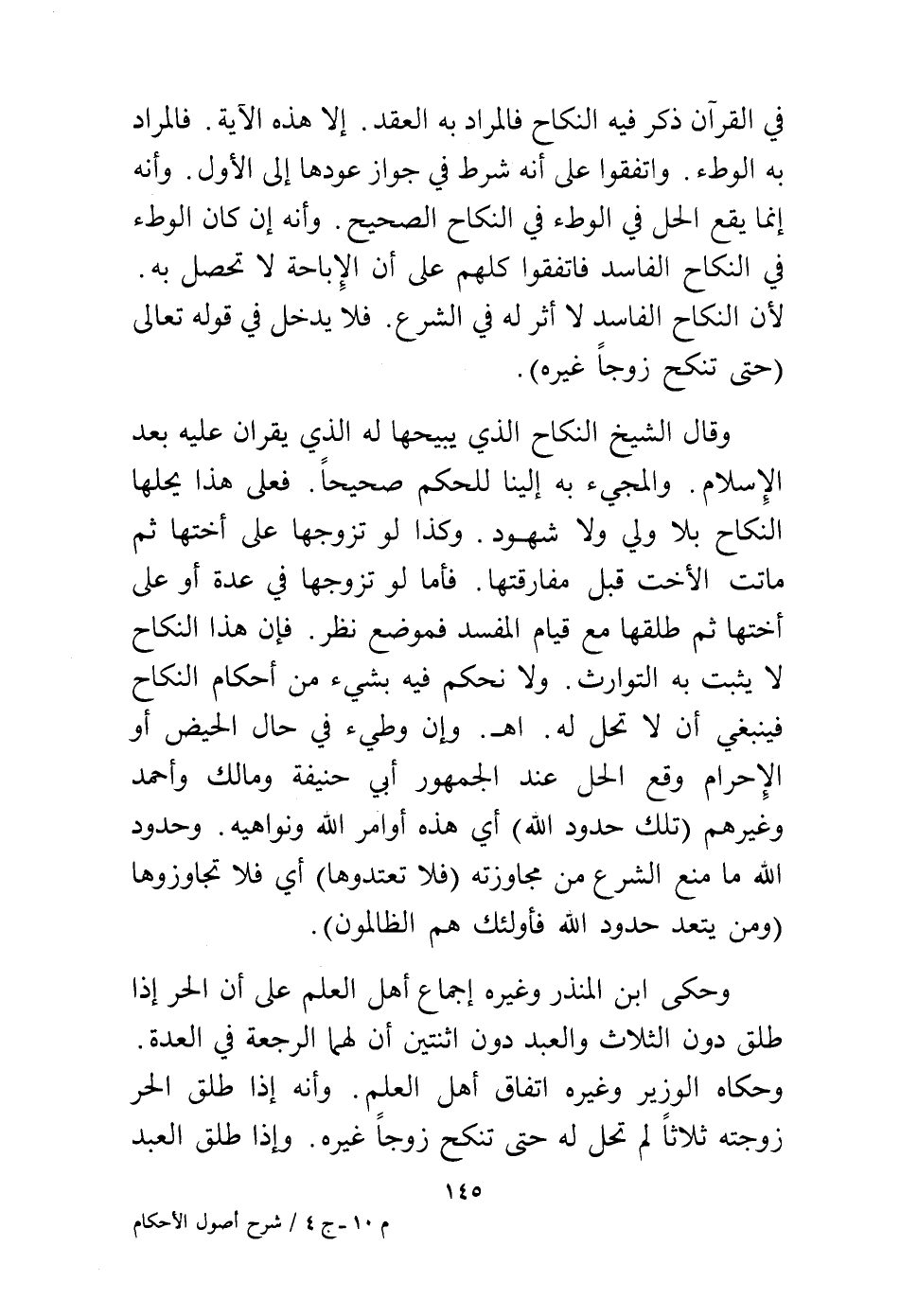 وحكى ابن المنذر وغيره إجماع أهل العلم على أن الحر إذا طلق دون الثلاث والعبد دون اثنتين أن لهما الرجعة في العدة وحكاه الوزير وغيره اتفاق أهل العلم، وأنه إذا طلق الحر زوجته ثلاثًا لم تحل له حتى تنكح زوجًا غيره، وإذا طلق العبد
