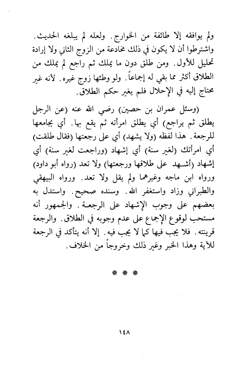 ورواه البيهقي والطبراني وزاد واستغفر الله، وسنده صحيح، واستدل به بعضهم على وجوب الإشهاد على الرجعة، والجمهور أنه مستحب لوقوع الإجماع على عدم وجوبه في الطلاق، والرجعة قرينته، فلا يجب فيها كما لا يجب فيه، إلا أنه يتأكد في الرجعة للآية وهذا الخبر وغير ذلك وخروجًا من الخلاف.