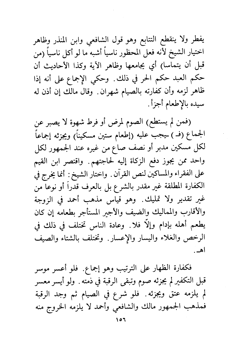 {فَمَنْ لَمْ يَسْتَطِعْ} الصوم لمرض أو فرط شهوة لا يصبر عن الجماع (فـ) يجب عليه {فَإِطْعَامُ سِتِّينَ مِسْكِينًا} ويجزئه إجماعًا لكل مسكين مدبر أو نصف صاع من غيره عند الجمهور لكل واحد ممن يجوز دفع الزكاة إليه لحاجتهم، واقتصر ابن القيم على الفقراء والمساكين لنص القرآن، واختار الشيخ، أن ما يُخرج في الكفارة المطلقة غير مقدر بالشرع بل العرف قدرًا أو نوعًا من غير تقدير ولا تمليك، وهو قياس مذهب أحمد في الزوجة والأقارب والمماليك والضيف والأجير والمستأجر بطعامه إن كان يطعم أهله بإدام وإلا فلا، وعادة الناس تختلف في ذلك في الرخص والغلاء واليسار والإعسار، وتختلف بالشتاء