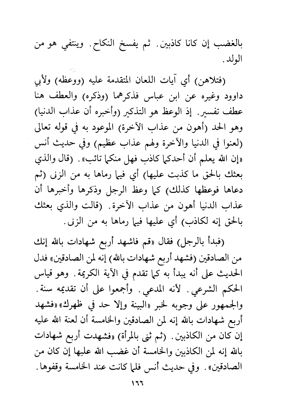(فبدأ بالرجل) فقال: «قم فاشهد أربع شهادات بالله إنك من الصادقين» (فشهد أربع شهادات بالله) إنه لمن الصادقين فدل الحديث على أنه يبدأ به كما تقدم في الآية الكريمة وهو قياس الحكم الشرعي، لأنه المدعي، وأجمعوا على أن تقديمه سنة، والجمهور على وجوبه لخبر "البينة وإلا حد في ظهرك" فشهد أربع شهادات بالله إنه لمن الصادقين والخامسة أن لعنة الله عليه إن كان من الكاذبين (ثم ثَنى بالمرأة) "فشهدت أربع شهادته بالله إنه لمن الكاذبين والخامسة أن غضب الله عليها إن كان من الصادقين، وفي حديث أنس فلما كانت عند الخامسة وقفوها