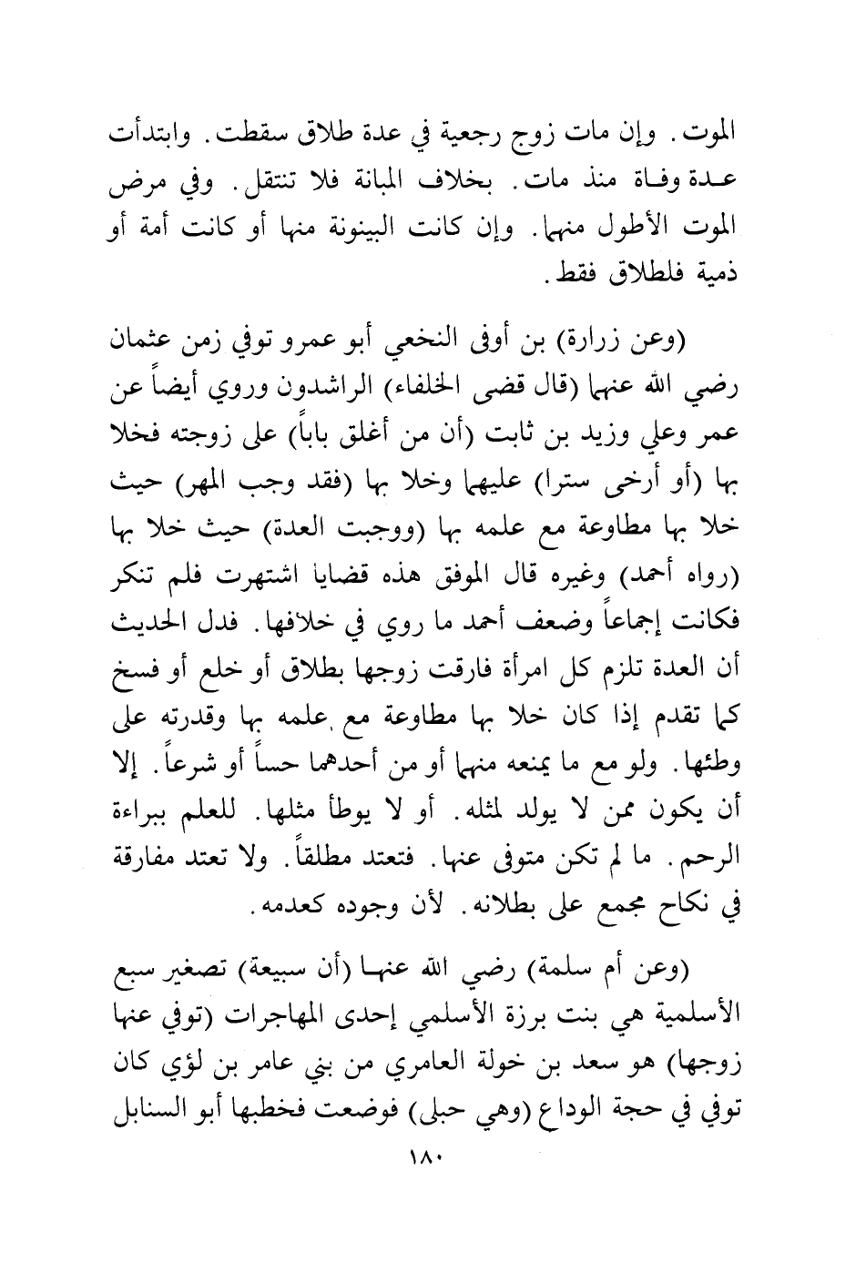 (وعن زرارة) ابن أوفى النخعي أبو عمرو توفي زمن عثمان رضي الله عنهما (قال قضى الخلفاء) الراشدون وروي أيضًا عن عمر وعلي وزيد بن ثابت (أن من أغلق بابًا) على زوجته فخلا بها (أو أرخى سترًا) عليهما وخلا بها (فقد وجب المهر) حيث خلا بها مطاوعة مع علمه بها (ووجبت العدة) حيث خلا بها (رواه أحمد) وغيره قال الموفق هذه قضايا اشتهرت فلم تنكر فكانت إجماعًا وضعف أحمد ما روي في خلافها، فدل الحديث أن العدة تلزم كل امرأة فارقت زوجها بطلاق أو خلع أو فسخ كما تقدم إذا كان خلا بها مطاوعة مع علمه بها وقدرته على وطئها.