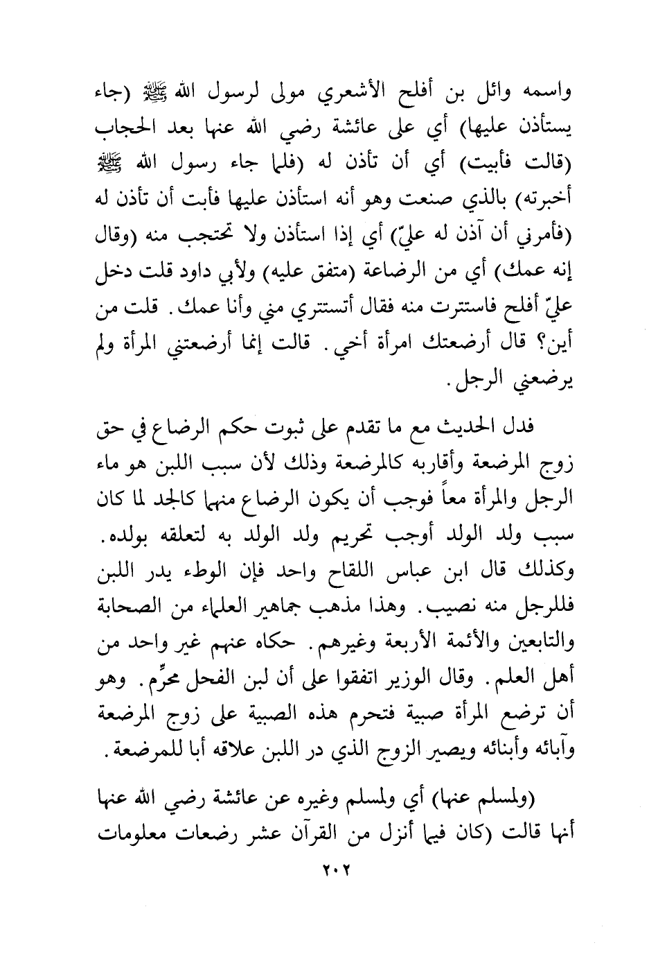 فدل الحديث مع ما تقدم على ثبوت حكم الرضاع في حق زوج المرضعة وأقاربه كالمرضعة وذلك لأن سبب اللبن هو ماء الرجل والمرأة معًا فوجب أن يكون الرضاع منهما كالجد لما كان سبب ولد الولد أوجب تحريم ولد الولد به لتعلقه بولده، وكذلك قال ابن عباس اللقاح واحد، فإن الوطء يدر اللبن فللرجل منه نصيب، وهذا مذهب جماهير العلماء من الصحابة والتابعين والأئمة الأربعة وغيرهم، حكاه عنهم غير واحد من أهل العلم، وقال الوزير اتفقوا على أن لبن الفحل محرم، وهو أن ترضع المرأة صبية فتحرم هذه الصبية على زوج المرضعة وآبائه وأبنائه ويصير الزوج الذي در اللبن علاقة أبا للمرضعة.