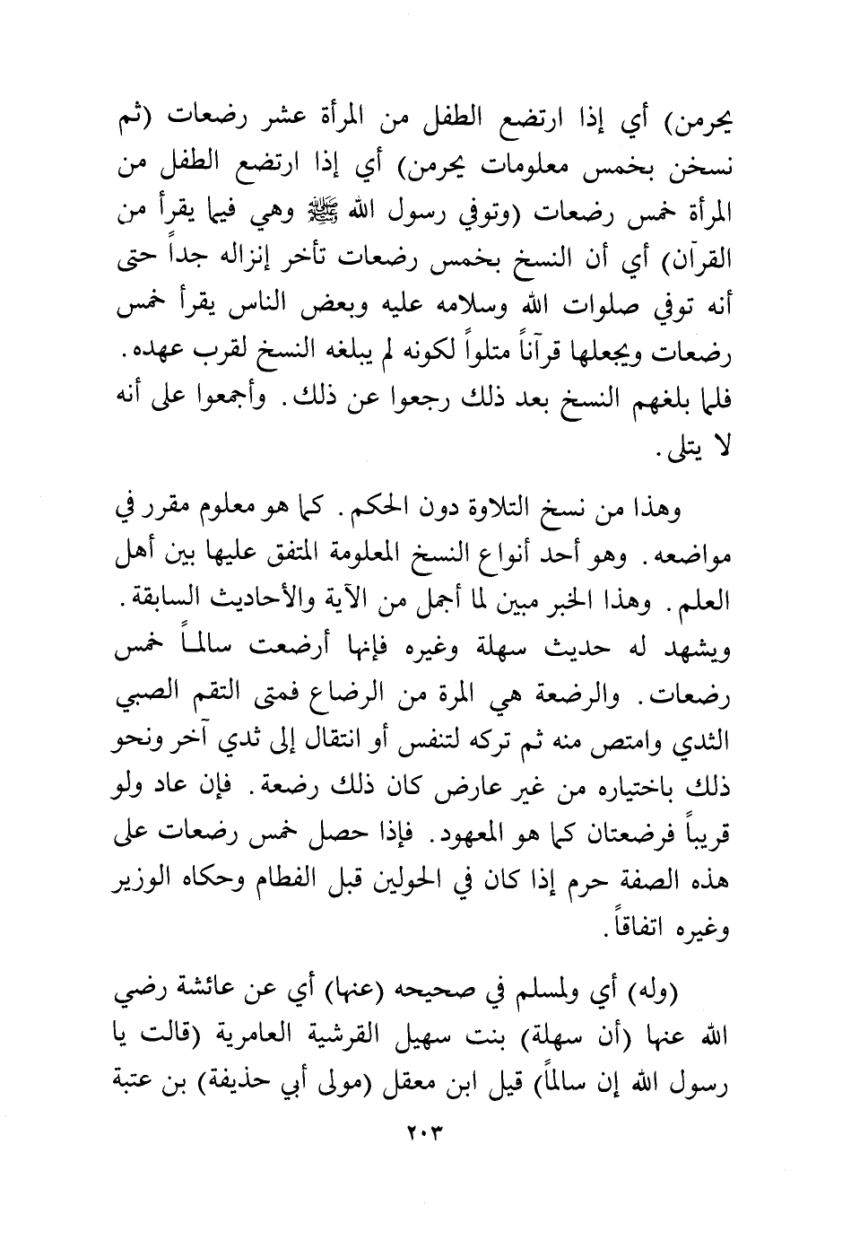 وهذا من نسخ التلاوة دون الحكم، كما هو معلوم مقرر في مواضعه، وهو أحد أنواع النسخ المعلومة المتفق عليها بين أهل العلم، وهذا الخبر مبين لما أجمل من الآية والأحاديث السابقة ويشهد له، حديث سهلة وغيره فإنها أرضعت سالمًا خمس رضعات، والرضعة هي المرة من الرضاع فمتى التقم الصبي الثدي وامتص منه ثم تركه لتنفس أو انتقال إلى ثدي آخر ونحو ذلك باختياره من غير عارض كان ذلك رضعة، فإن عاد ولو قريبًا فرضعتان كما هو المعهود، فإذا حصل خمس رضعات على هذه الصفة حرم إذا كان في الحولين قبل الفطام وحكاه الوزير وغيره اتفاقًا.