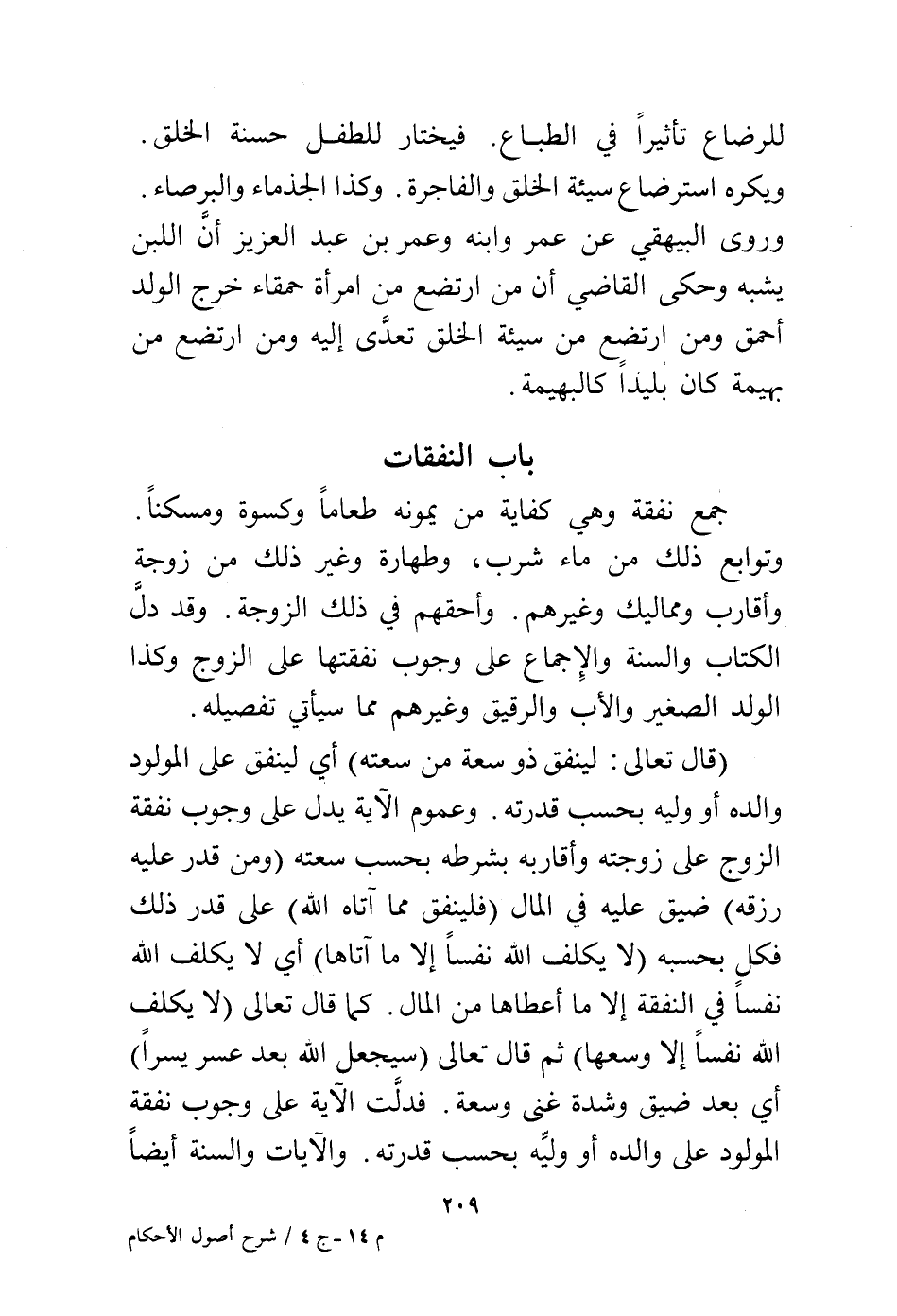 (قال تعالى: {لِيُنْفِقْ ذُو سَعَةٍ مِنْ سَعَتِهِ}) أي لينفق على المولود والده أو وليه بحسب قدرته وعموم الآية يدل على وجوب نفقة الزوج على زوجته وأقاربه بشرطه بحسب سعته {وَمَنْ قُدِرَ عَلَيْهِ رِزْقُهُ} ضيق عليه في المال {فَلْيُنْفِقْ مِمَّا آَتَاهُ اللَّهُ} على قدر ذلك فكل بحسبه {لَا يُكَلِّفُ اللهُ نَفْسًا إِلَّا مَا آتَاهَا} أي لا يكلف الله نفسًا في النفقة إلا ما أعطاها من المال، كما قال تعالى: {لَا يُكَلِّفُ اللهُ نَفْسًا إِلَّا وُسْعَهَا}