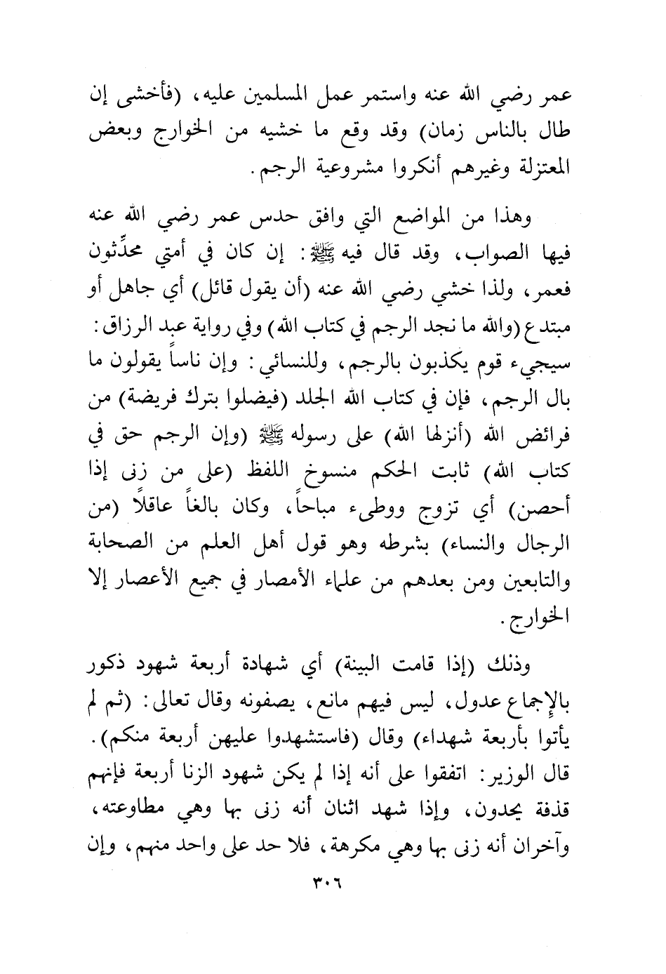 عمر رضي الله عنه واستمر عمل المسلمين عليه (فأخشى إن طال بالناس زمان) وقد وقع ما خشية من الخوارج وبعض المعتزلة وغيرهم، أنكروا مشروعية الرجم.