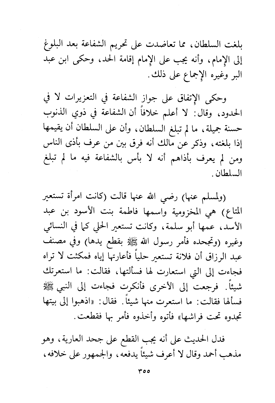 بلغت السلطان، مما تعاضدت على تحريم الشفاعة بعد البلوغ إلى الإمام وأنه يجب على الإمام إقامة الحد، وحكى ابن عبد البر وغيره الإجماع على ذلك.