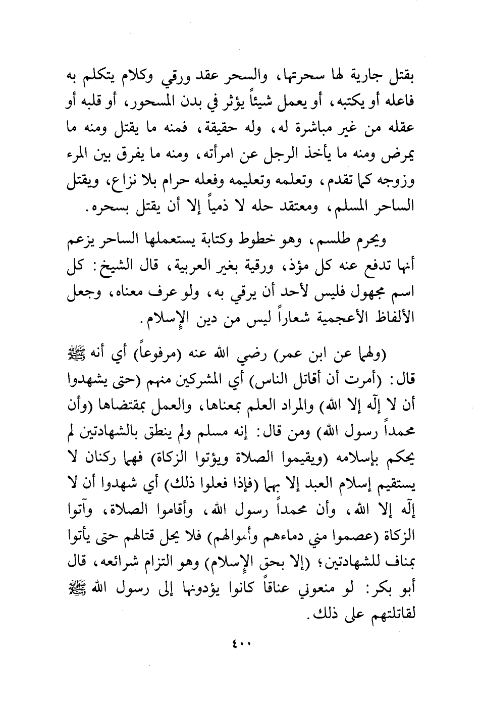 (ولهما عن ابن عمر) رضي الله عنه (مرفوعًا) أي أنه - صلى الله عليه وسلم - قال: (أمرت أن أقاتل الناس) أي المشركين منهم (حتى يشهدوا أن لا إله إلا الله) والمراد العلم بمعناها، والعمل بمقتضاها (وأن محمدًا رسول الله) ومن قال: إنه مسلم ولم ينطق بالشهادتين لم يحكم بإسلامه {وَيُقِيمُوا الصَّلَاةَ وَيُؤْتُوا الزَّكَاةَ} فهما ركنان لا يستقيم إسلام العبد إلا بهما (فإذا فعلوا ذلك) أي شهدوا أن لا إله إلا الله، وأن محمدًا رسول الله، وأقاموا الصلاة، وآتوا الزكاة (عصموا مني دماءهم وأموالهم) فلا يحل قتالهم حتى يأتوا بمناف للشهادتين (إلا بحق الإسلام) وهو التزام شرائعه قال أبو بكر: لو منعوني عناقًا كانوا يؤدونها إلى رسول الله - صلى الله عليه وسلم - لقاتلتهم على ذلك.
