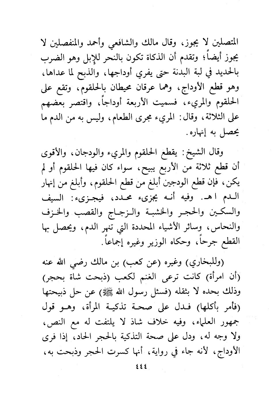 ولا وجه له، ودل على صحة التذكية بالحجر الحاد إذا فرى الأوداج، لأنه جاء في رواية، أنها كسرت الحجر وذبحت به،