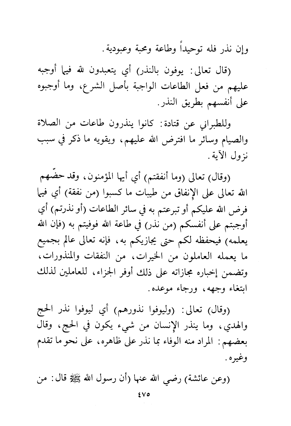 (قال تعالى: {يُوفُونَ بِالنَّذْرِ} أي يتعبدون لله فيما أوجبه عليهم من فعل الطاعات الواجبة بأصل الشرع، وما أوجبوه على أنفسهم بطريق النذر.